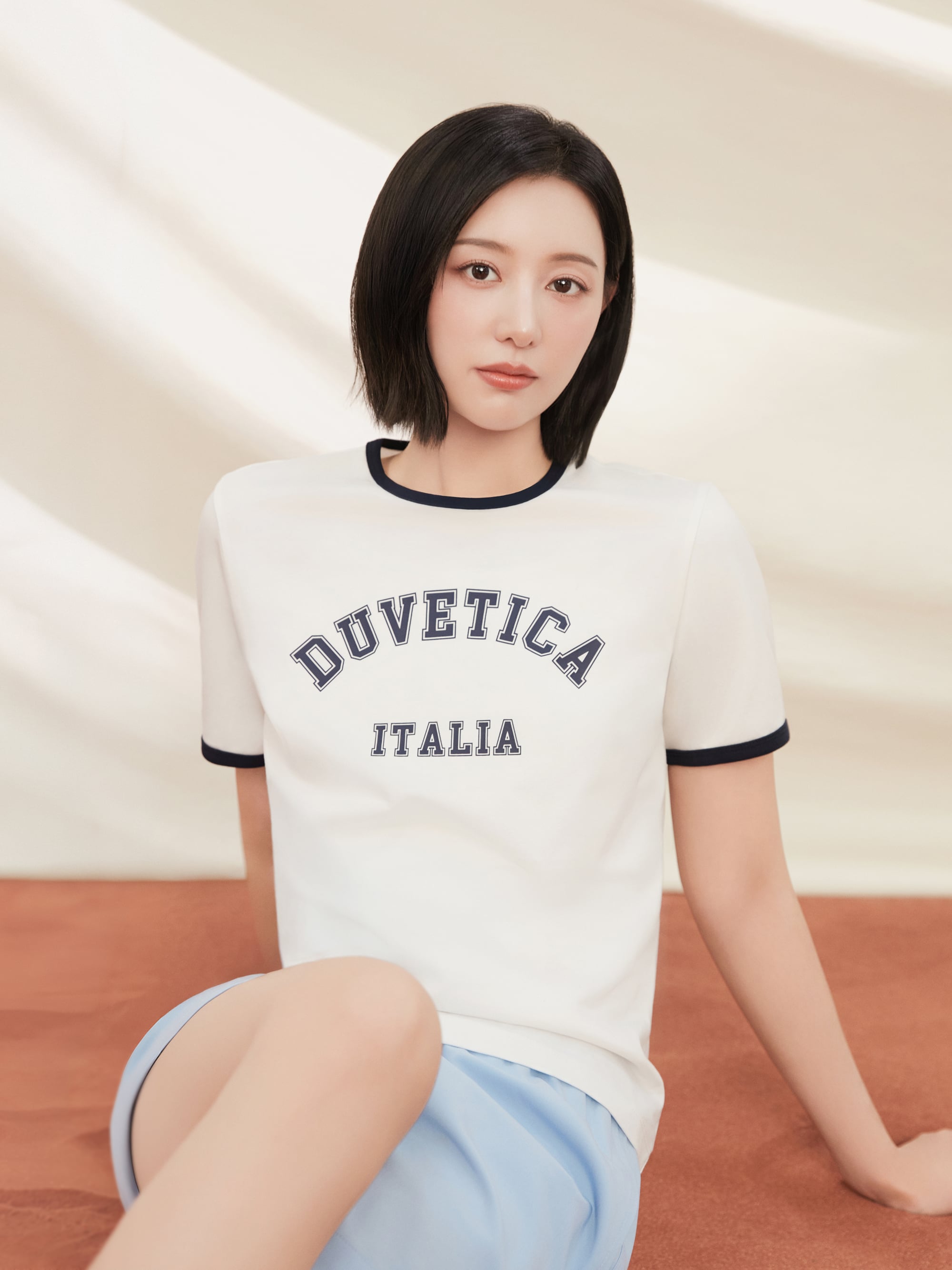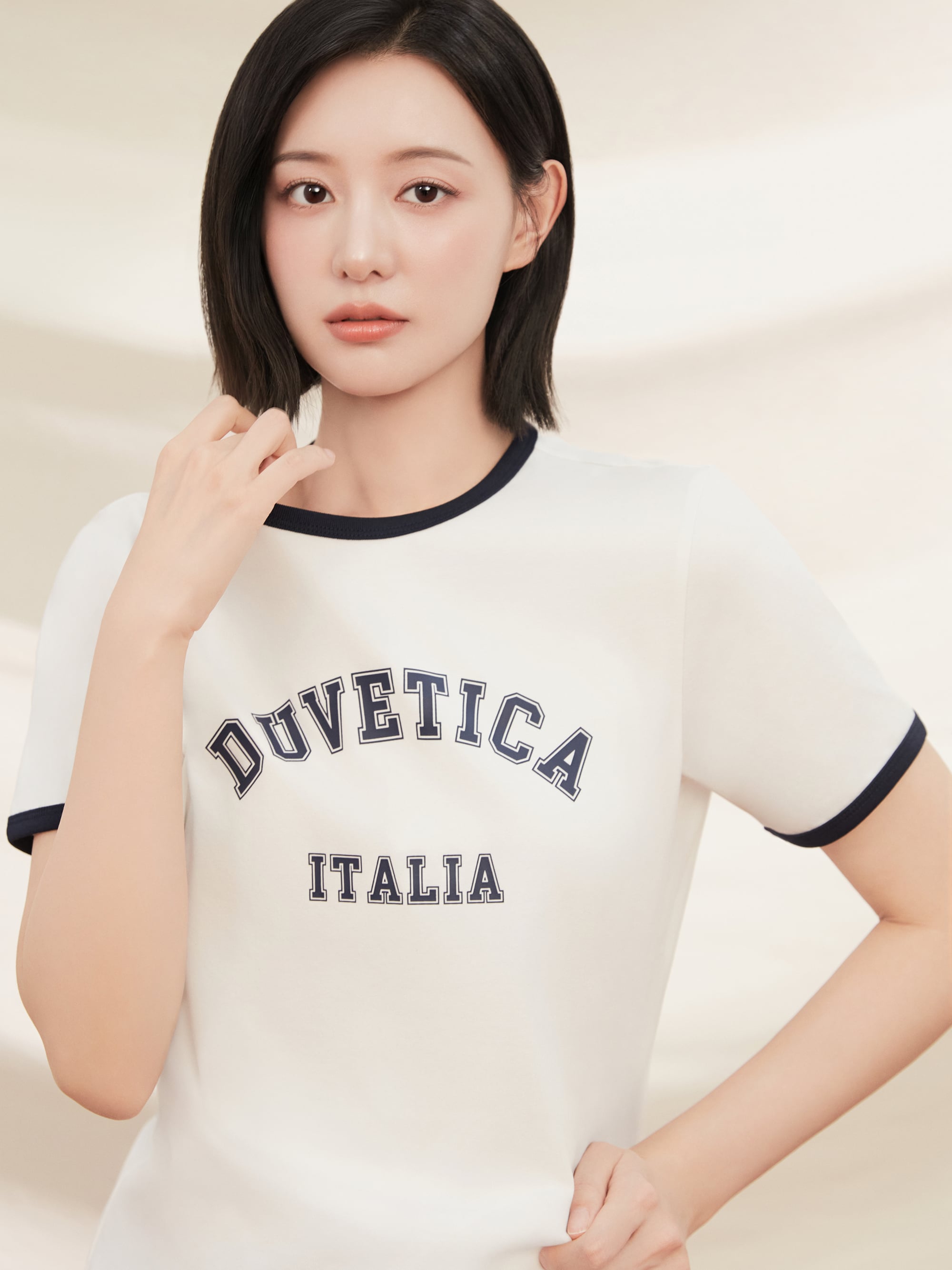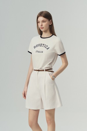 - 아치형 바시티 로고 그래픽으로 썸머 스타일링의 키 포인트로 제안