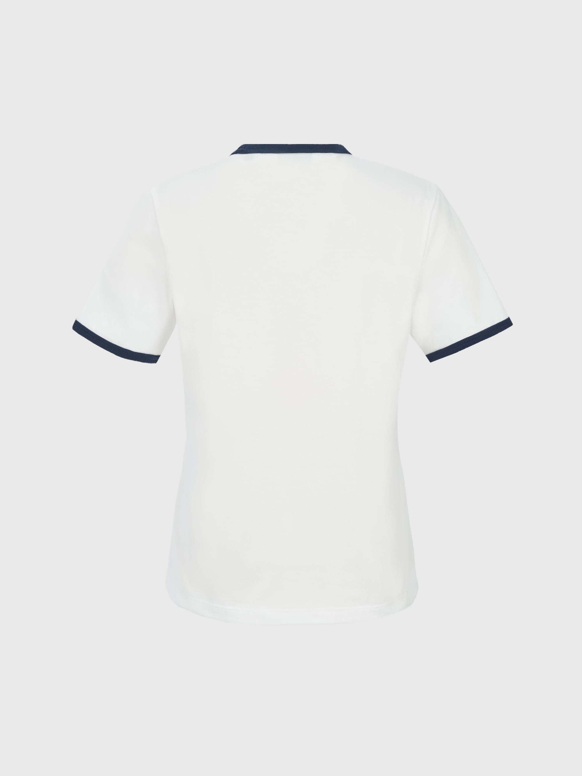 - 빈티지 로고 그래픽과 소매 배색이 포인트인 레귤러핏 링거티셔츠
