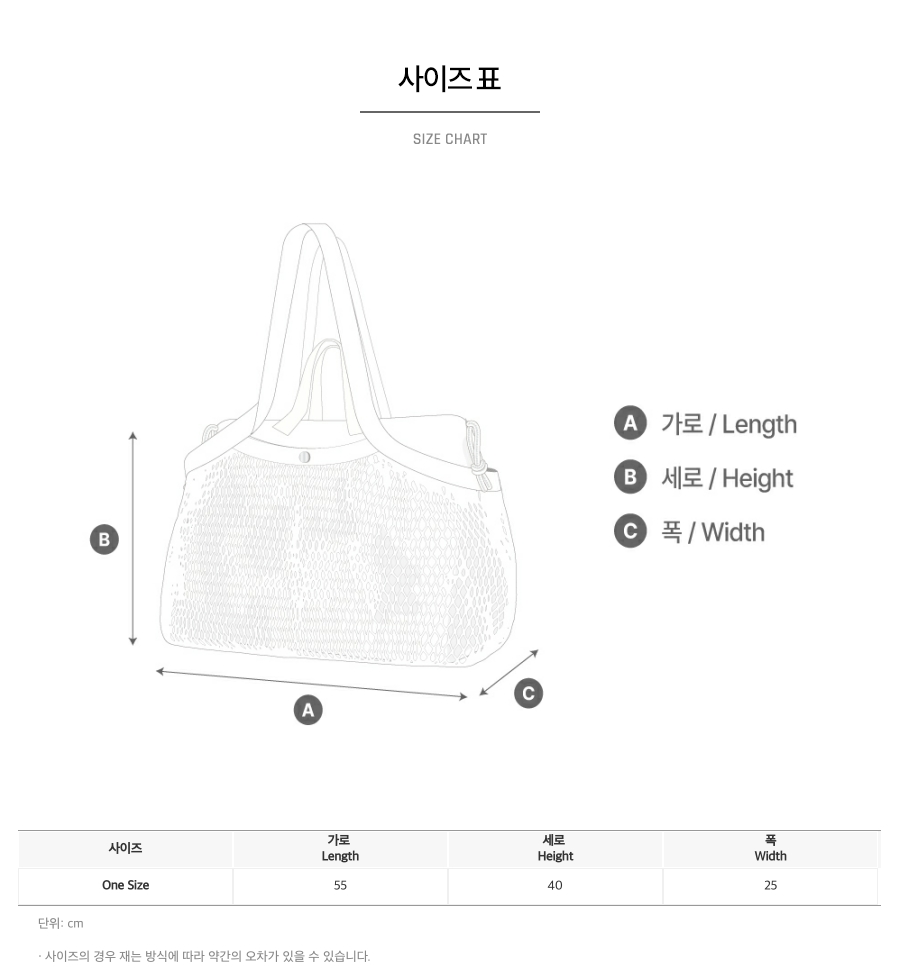 | 취급시 주의사항 | 1. 미지근한 물에 중성세제로 손세탁 해주시기 바랍니다. 2. 세탁기, 건조기, 표백제 사용은 피하시기 바랍니다. 3. 날카로운 물건을 수납할 경우 제품에 손상이 갈 수 있으니 주의하시기 바랍니다. 4. 자세한 내용 상세페이지 참조 |