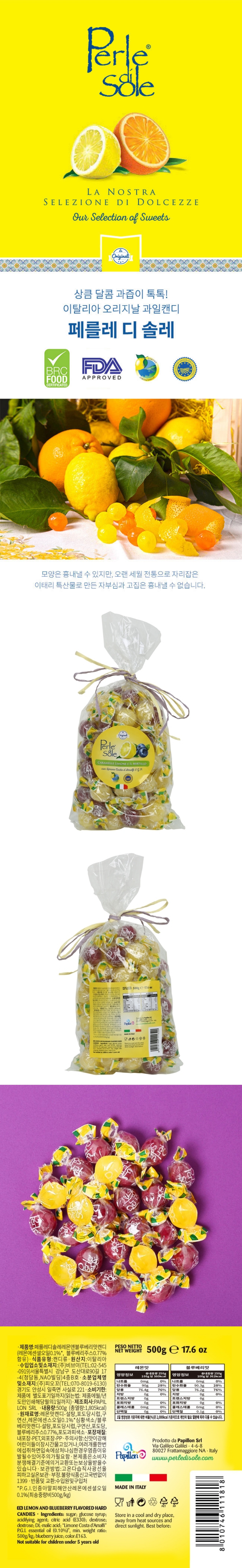 페를레디솔레 레몬&블루베리캔디 500g