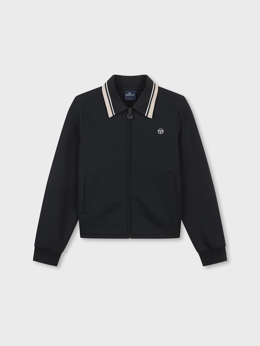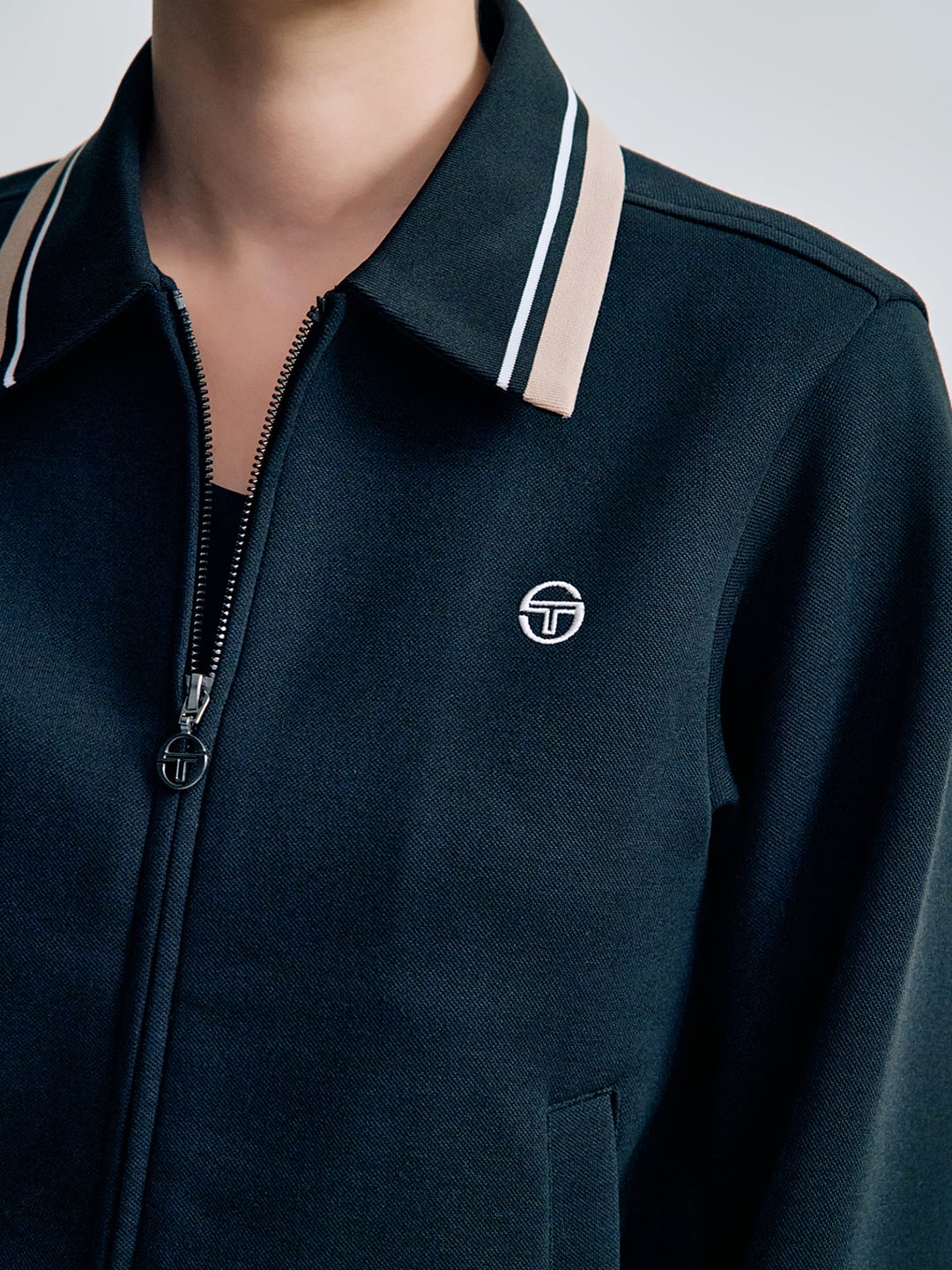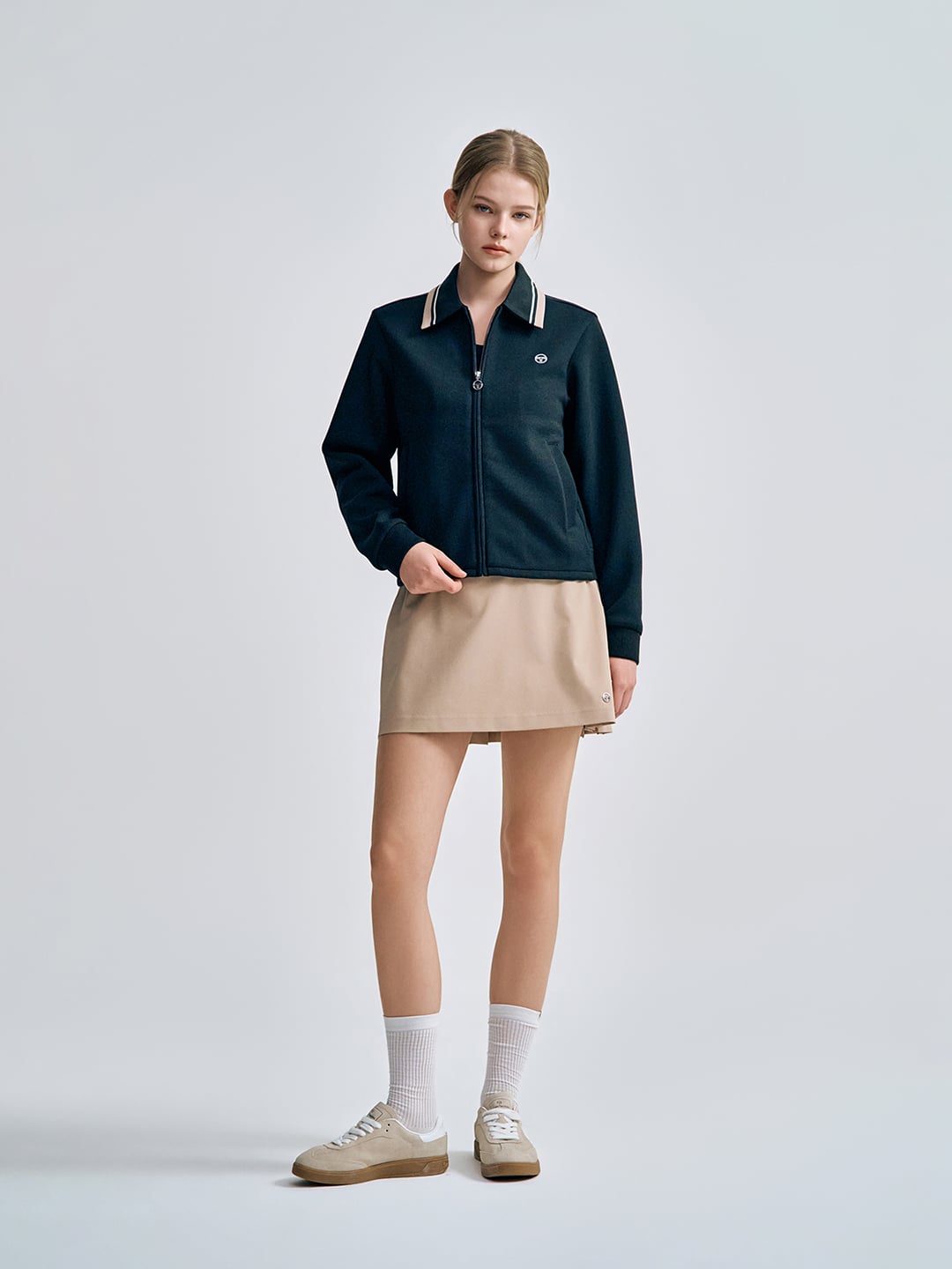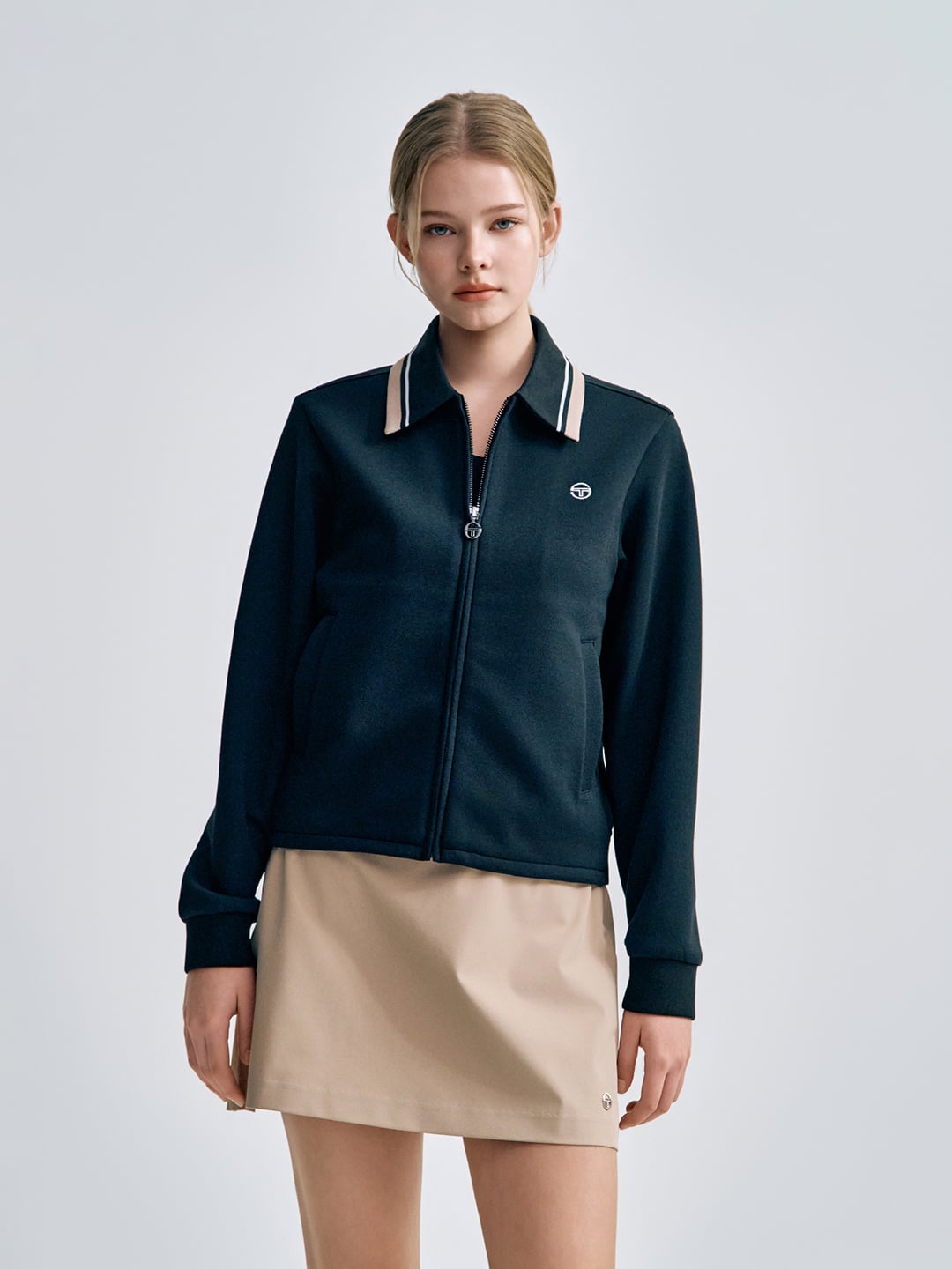 - -- 클래식한 스트라이프 배색 카라를 적용한 봄버 자켓