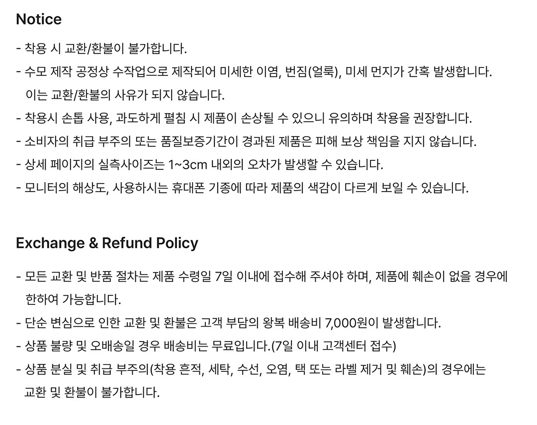 | 세탁방법 및 취급시 주의사항 | 상품상세설명참조 |