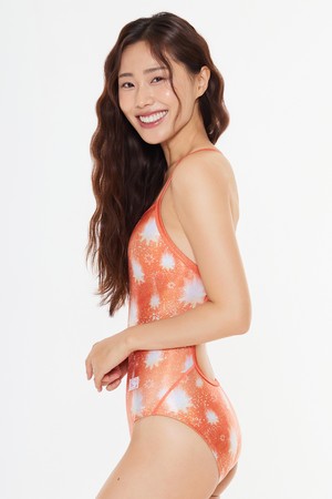 [썸베리] 스파클스타 엑스백 포일 원피스 수영복 - 오렌지