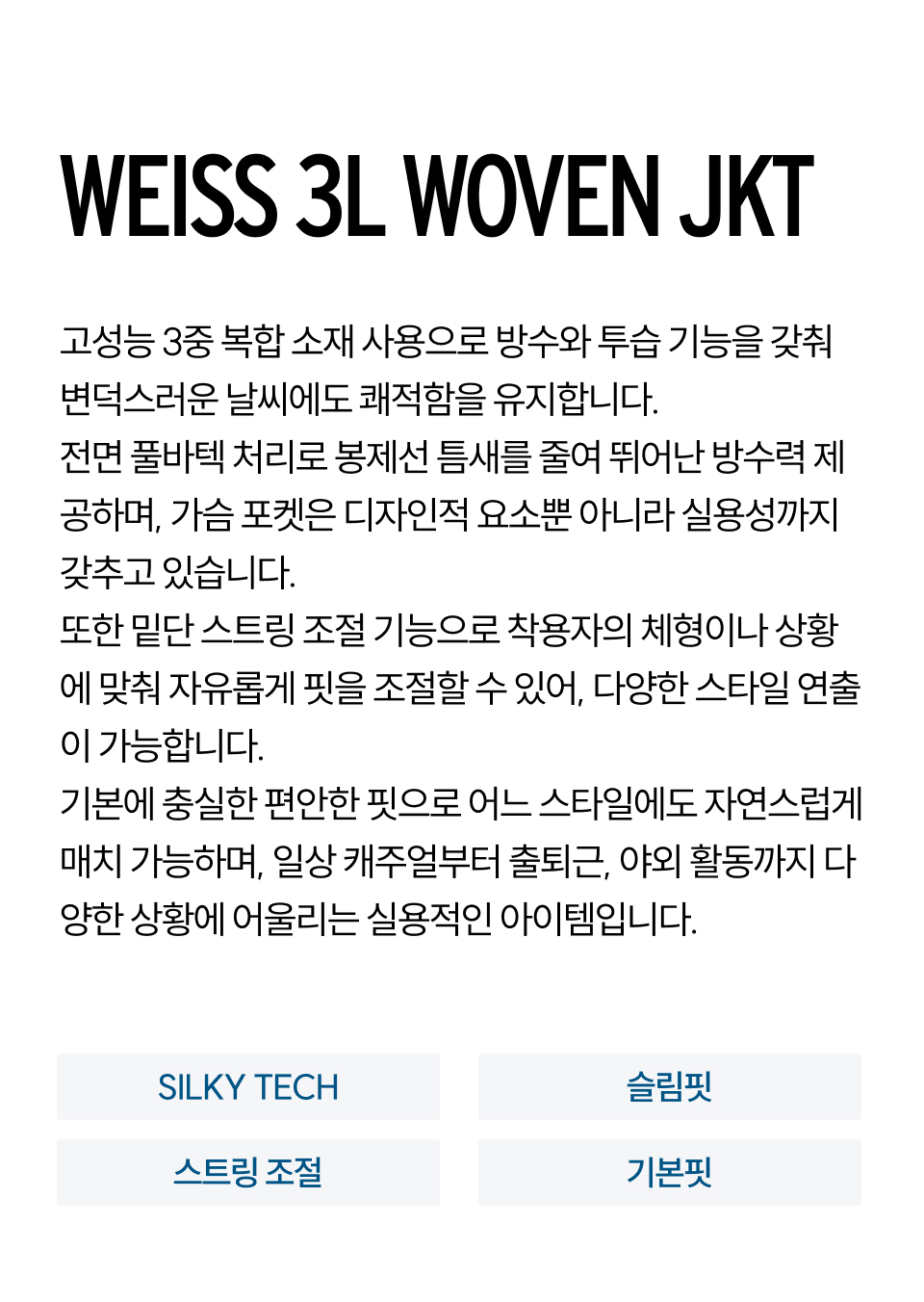 | 소재 | 나일론 85%, 폴리우레탄 15% |