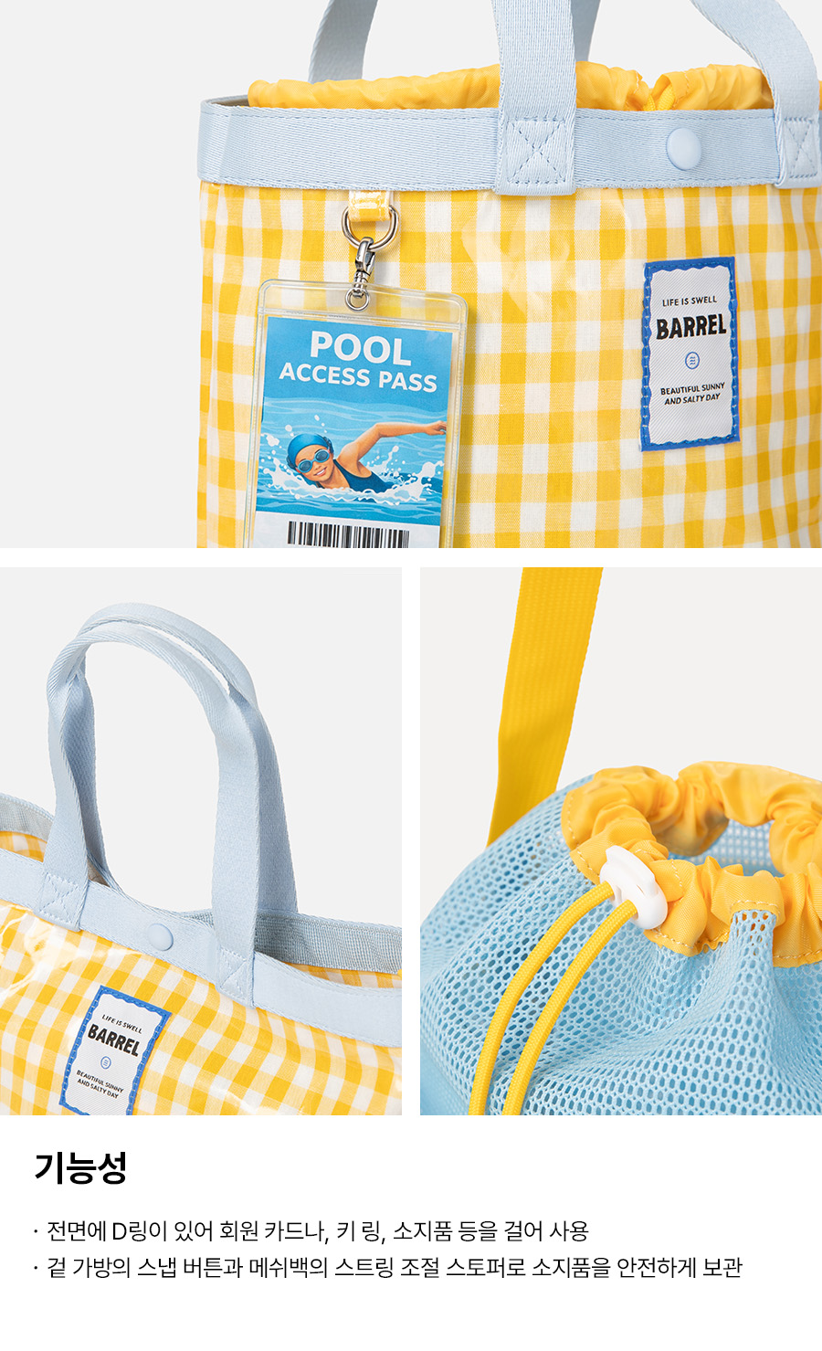 | 소재 | 토트백: 폴리염화비닐 100% / 메쉬백: 폴리에스터 100% |