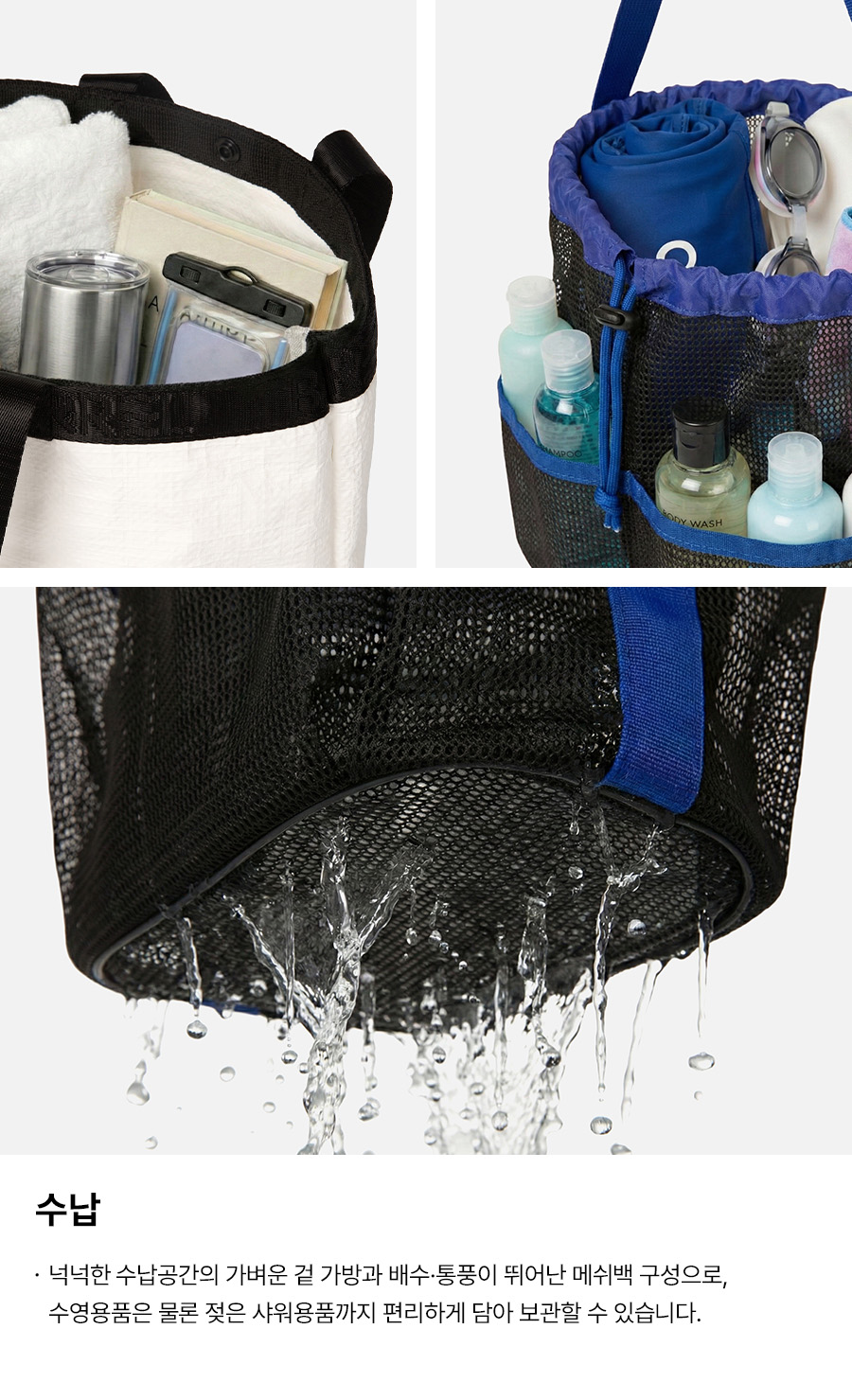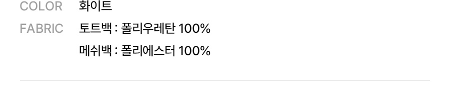 | 소재 | 토트백: 폴리우레탄 100% / 메쉬백: 폴리에스터 100% |