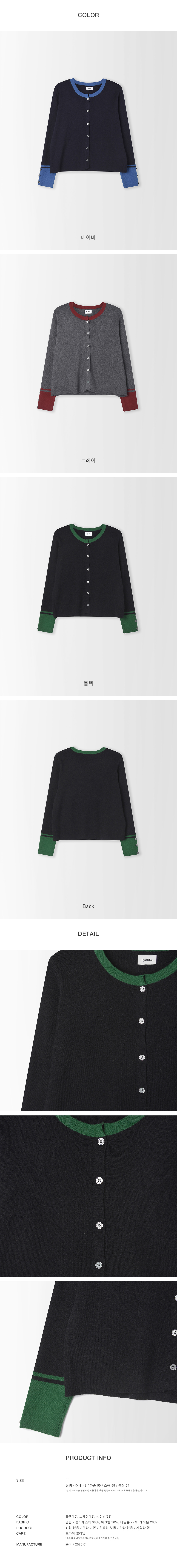 라운드넥 소매배색 가디건_PD6SD603