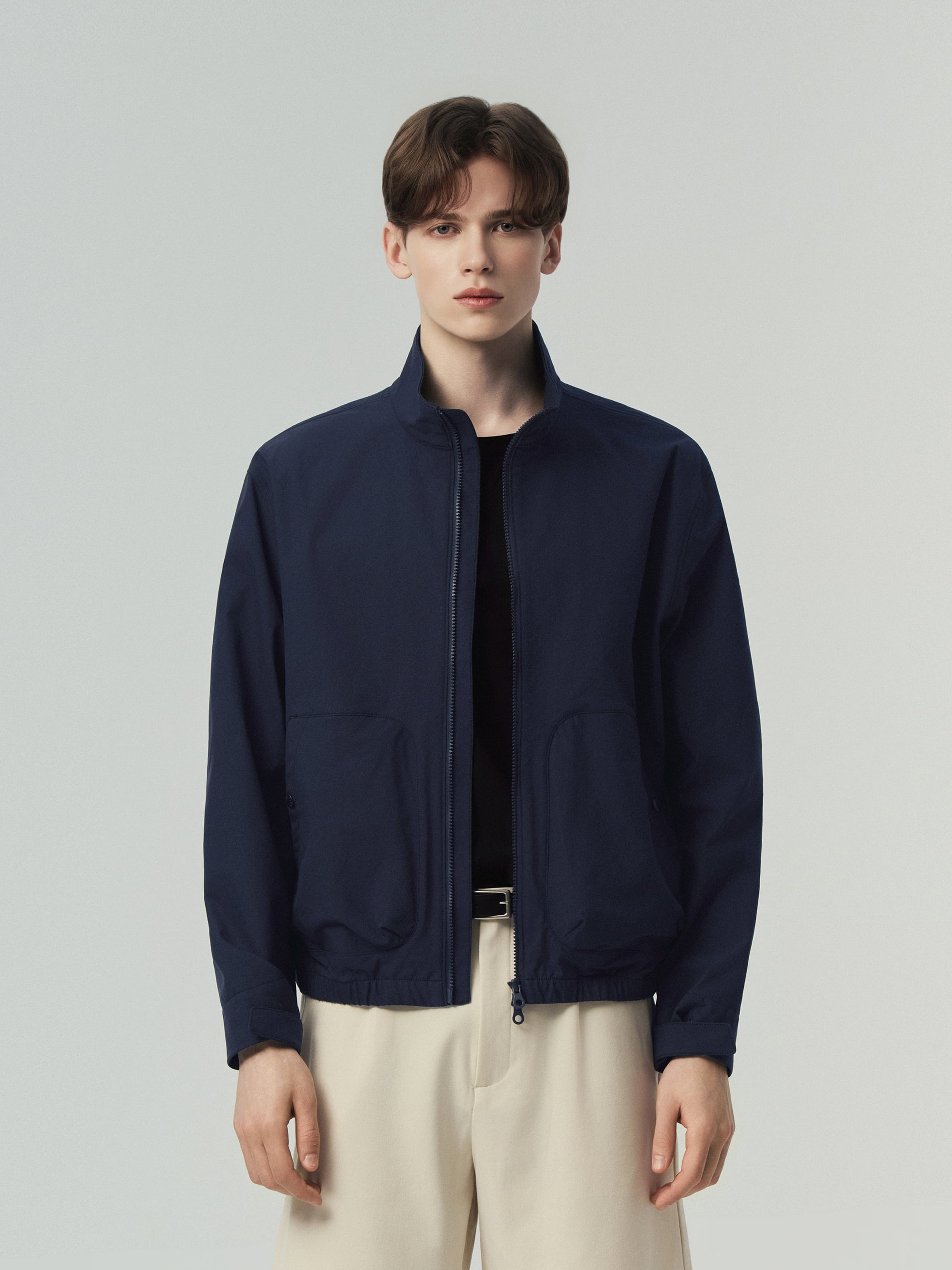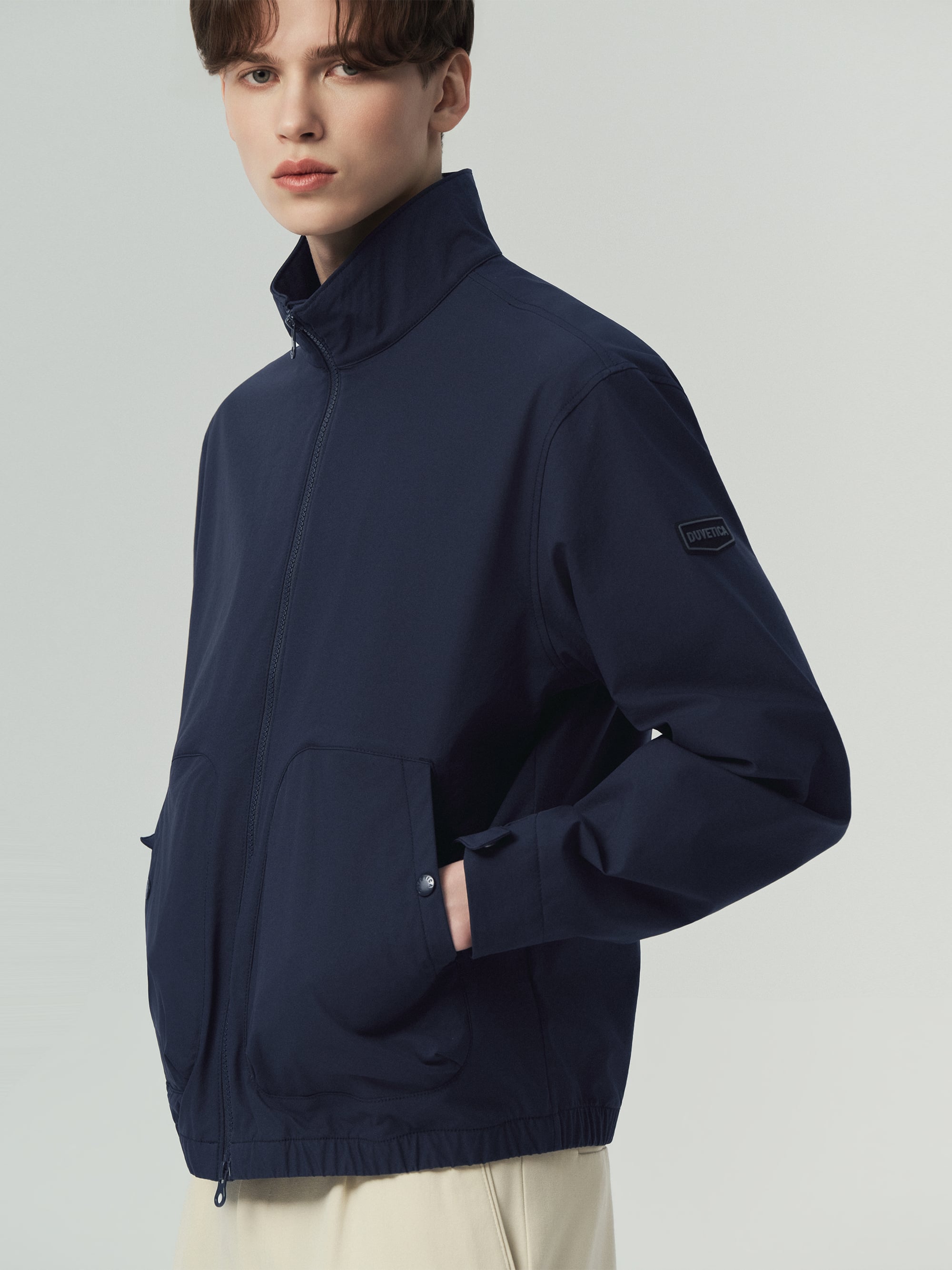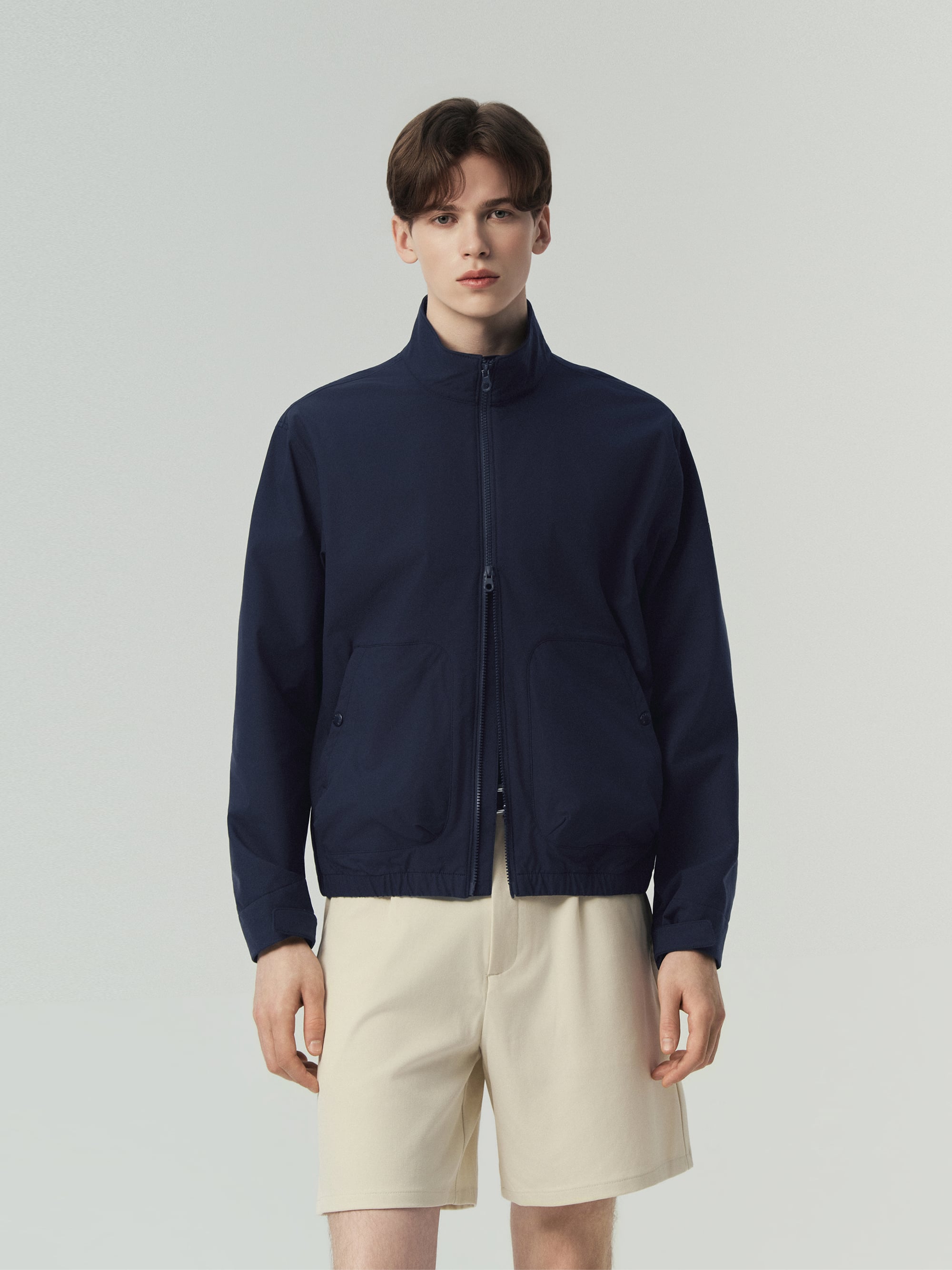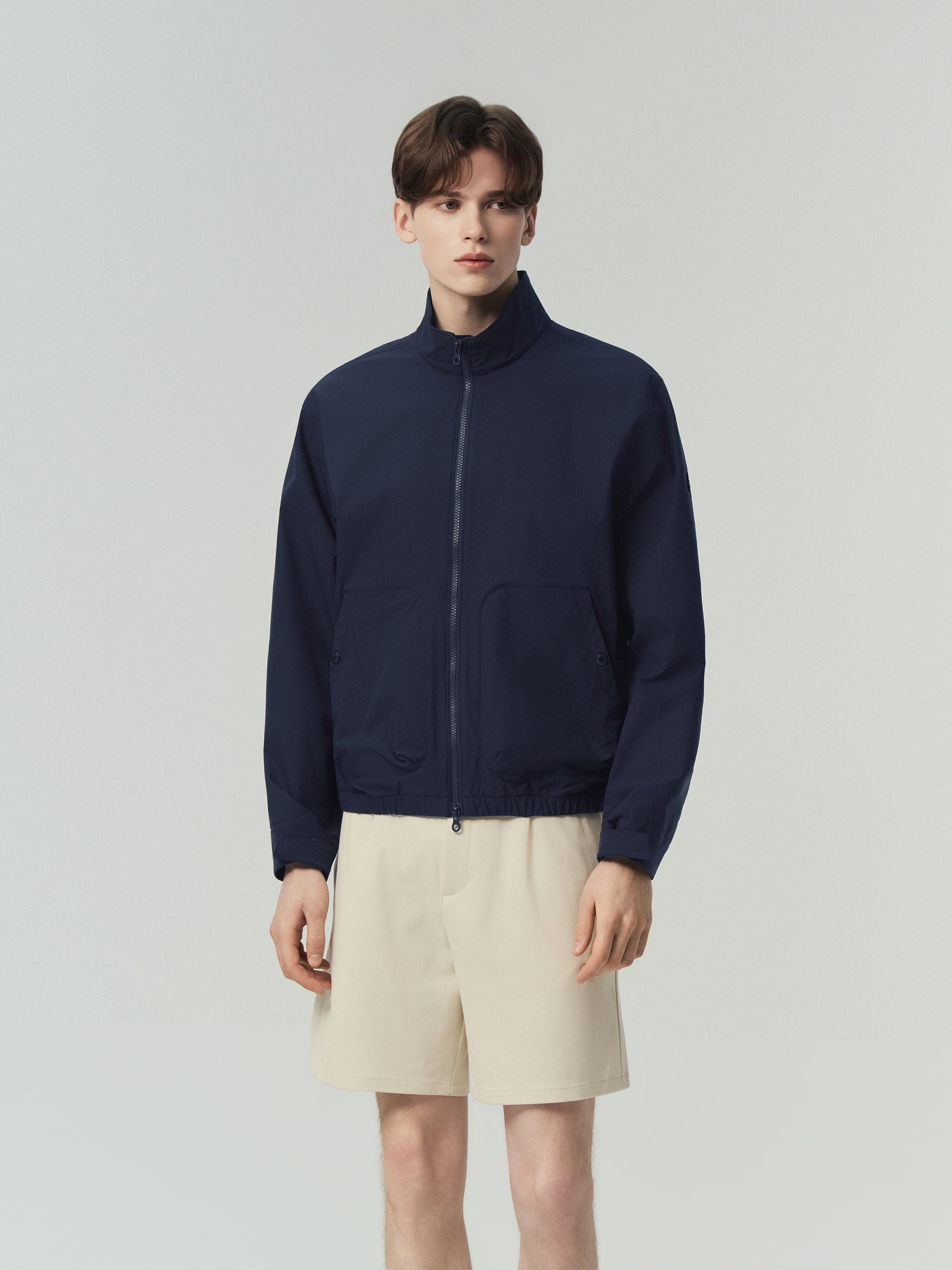 - 코튼 터치의 발수 기능성 소재를 적용한 숏 기장 경량 하이넥 윈드 자켓
