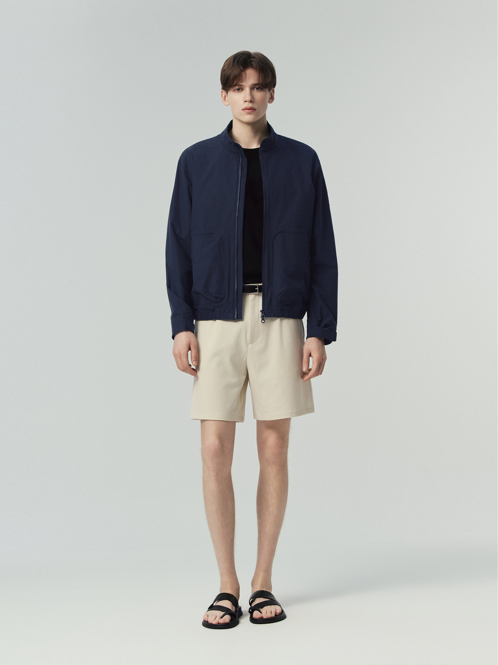 - 숏 기장 설계로 경쾌한 비율과 활동적인 남성 실루엣 연출