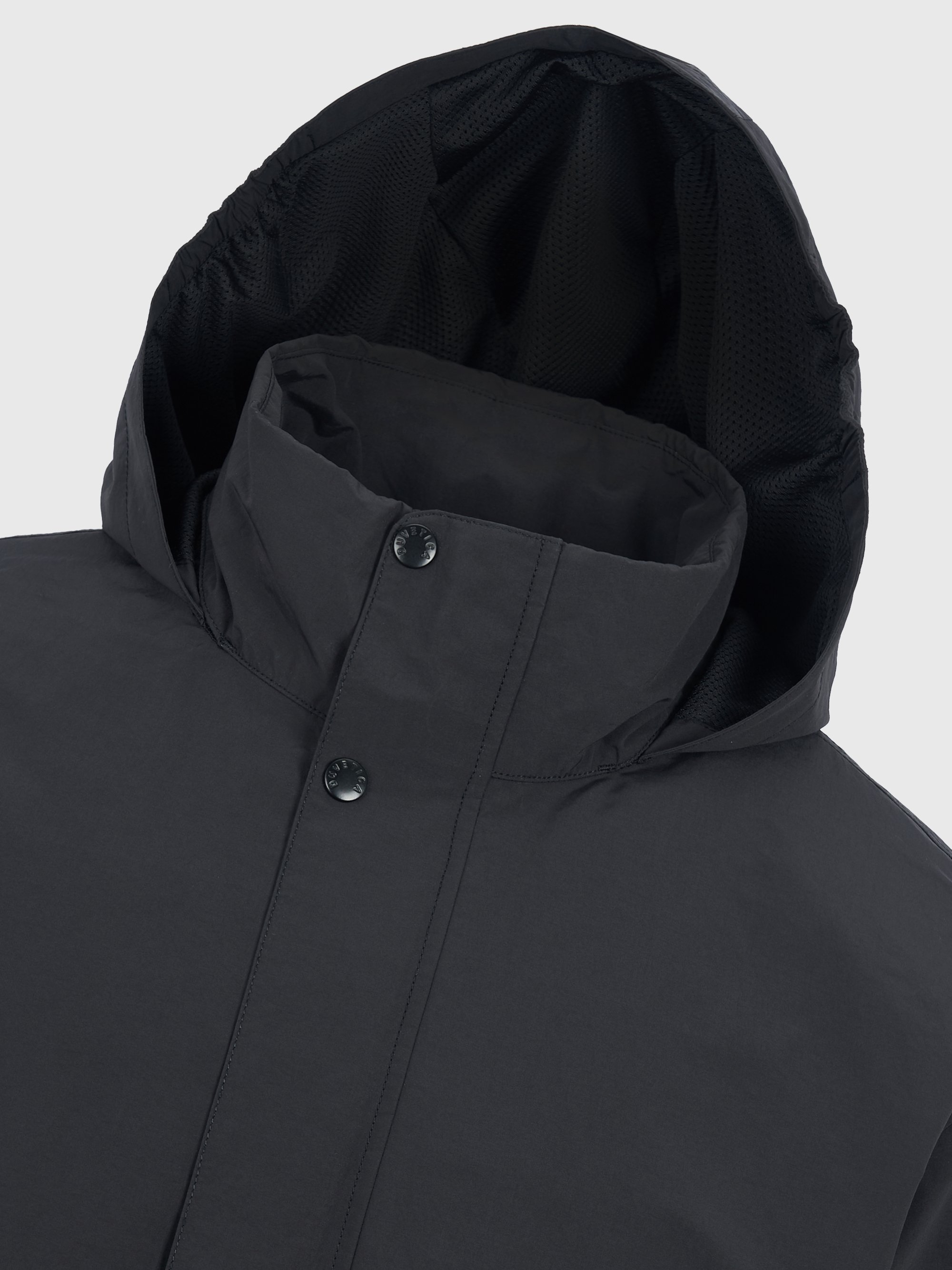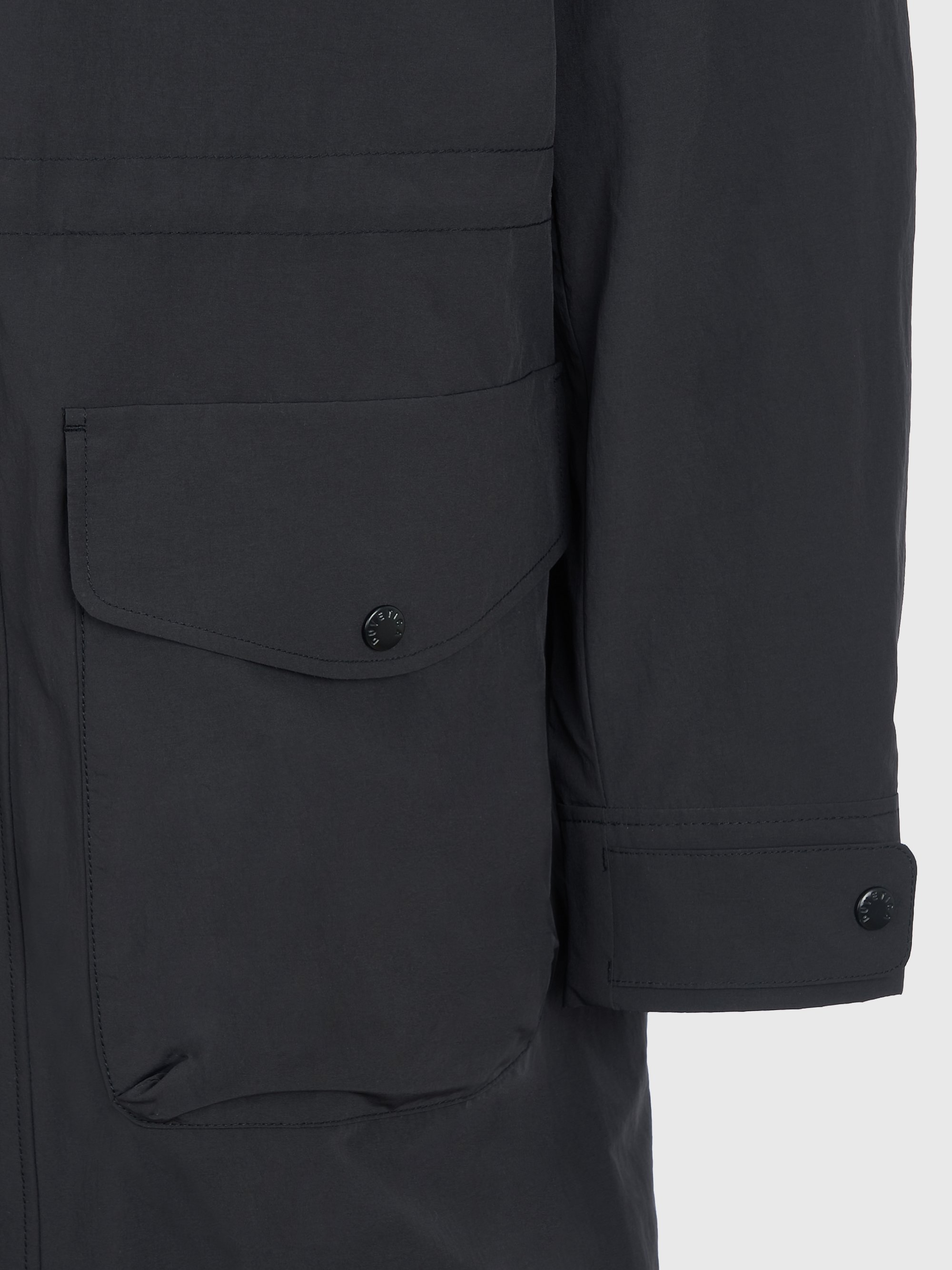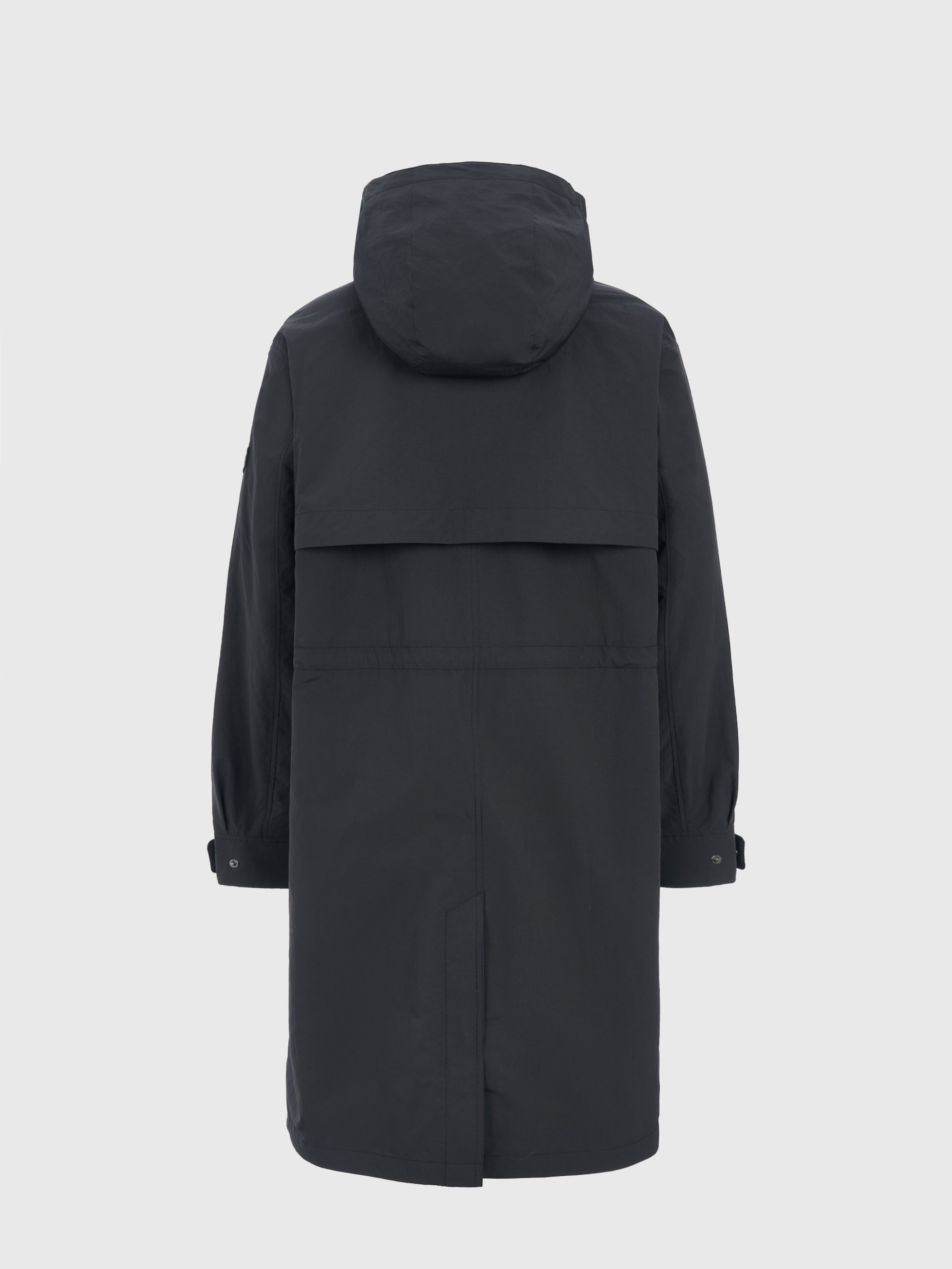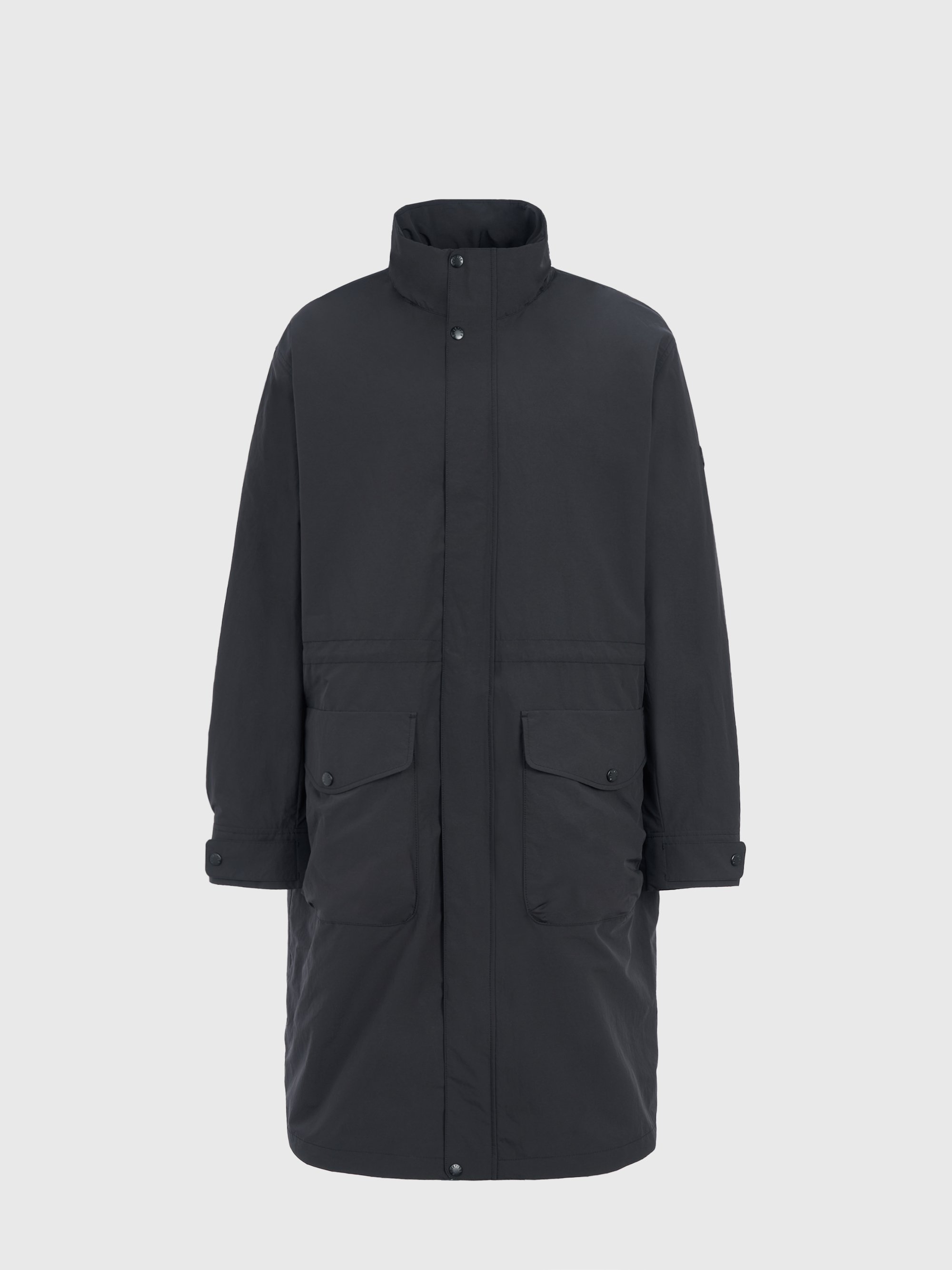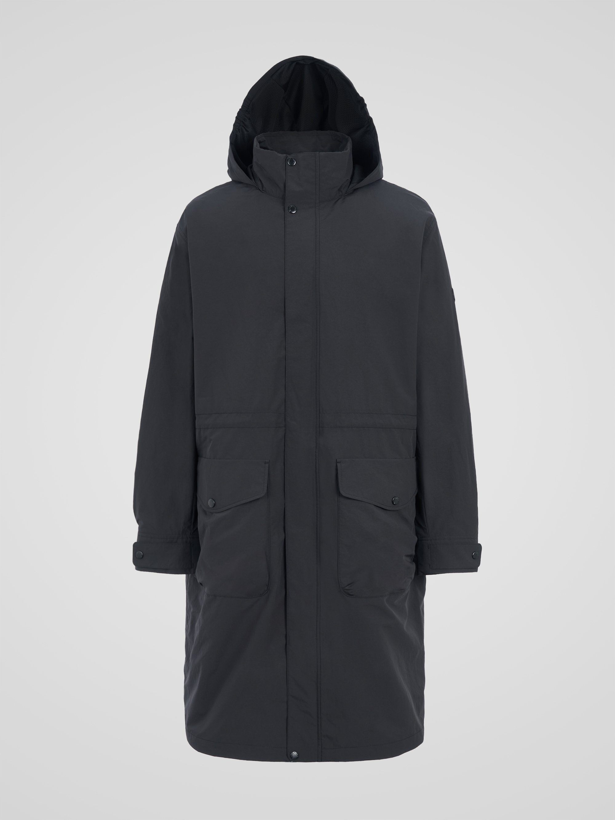 - 발수 기능성 소재를 적용해 비·바람에 강하고 간절기 착용에 적합한 남성 롱 아우터