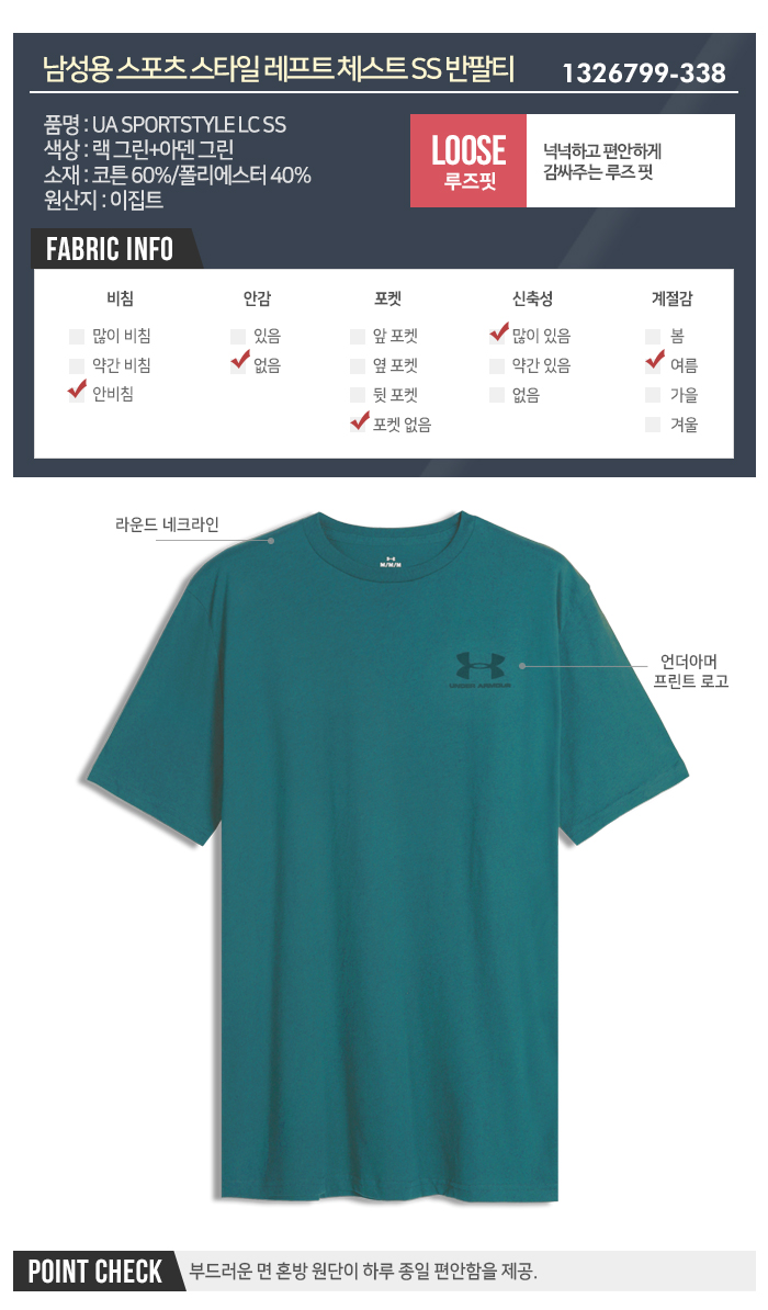 [언더아머] 남성 스포츠 스타일 레프트 체스트 SS 반팔티 1326799_338