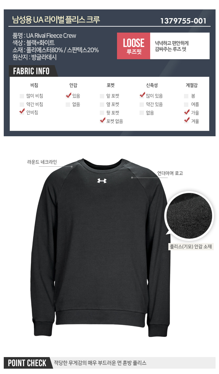[언더아머] 남성 라이벌 플리스 크루 1379755_001