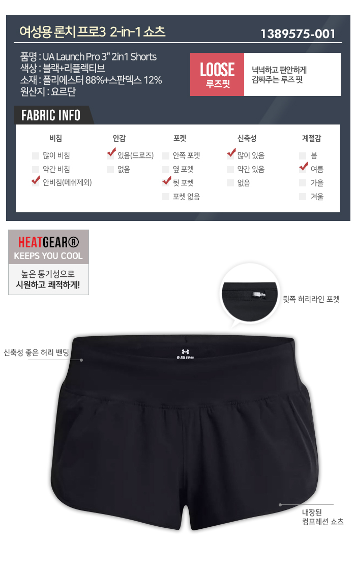 [언더아머] 우먼스 론치 프로3 투인원 쇼츠 1389575_001