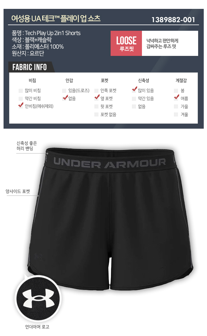 [언더아머] 우먼스 테크 플레이 업 쇼츠 1389882_001