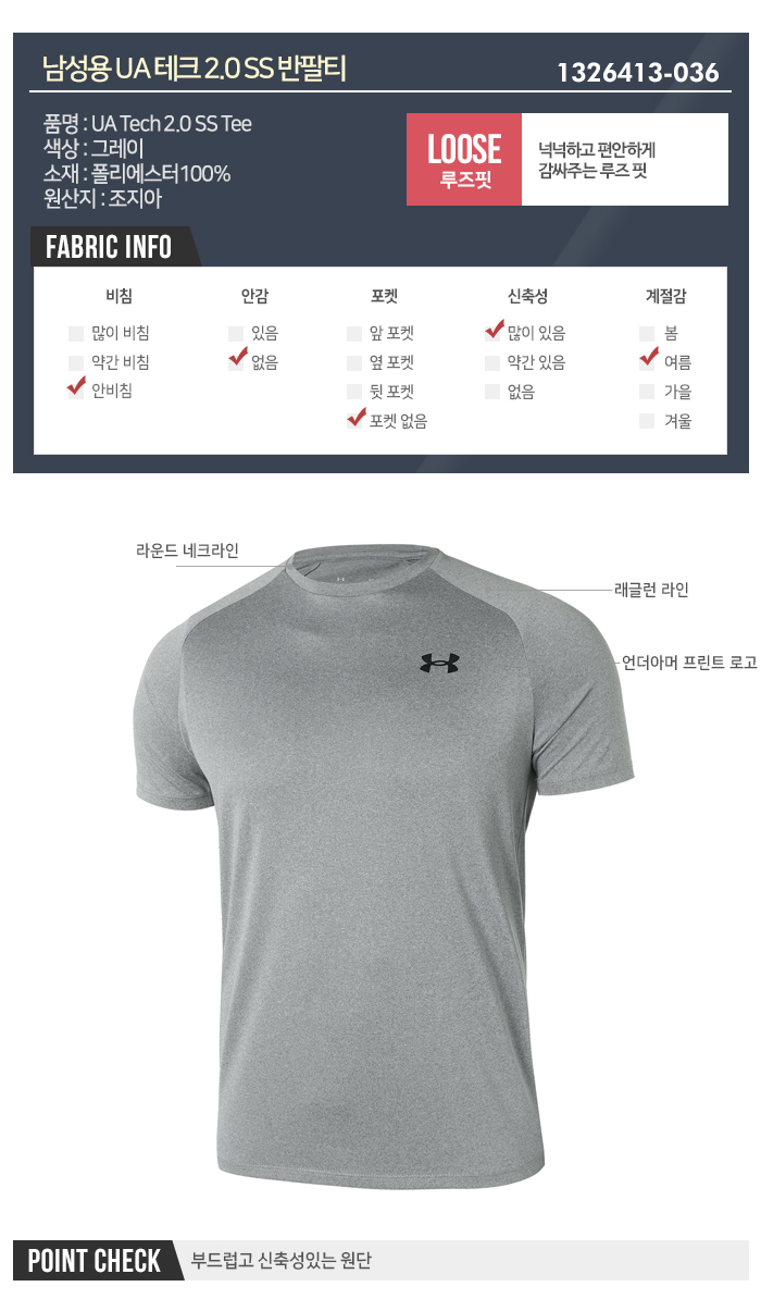 [언더아머] 남성용 테크 2.0 SS 반팔티 1326413_036