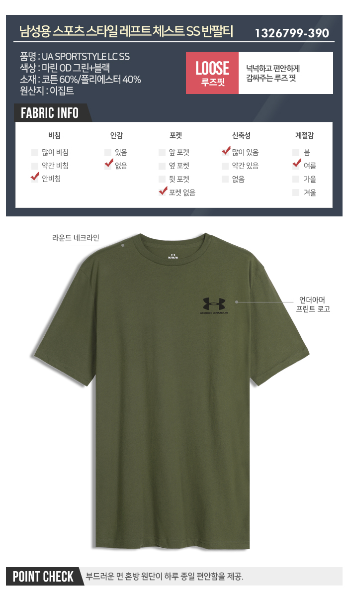 [언더아머] 남성용 스포츠 스타일 레프트 체스트 SS 반팔티 1326799_390