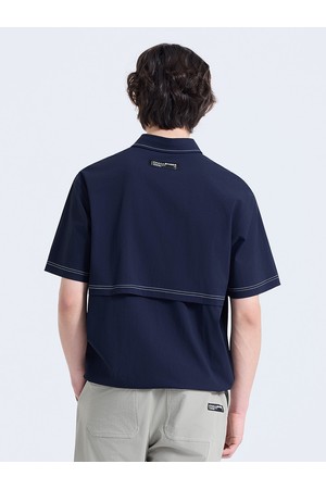 남성 워크웨어 포켓 스트링 반팔 우븐탑 네이비