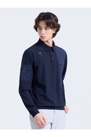 남성 우븐패치 카라 긴팔 티셔츠 네이비
