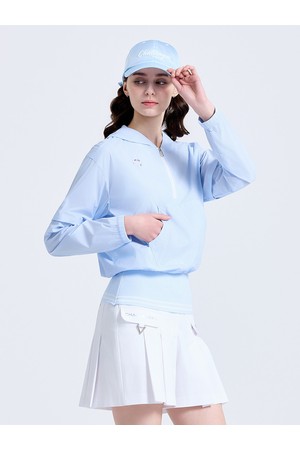 여성 제로라이트 2WAY 소매 탈부착 후드 우븐탑 스카이블루