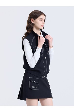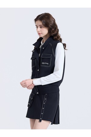 여성 스티치 포인트 4포켓 하이넥 베스트 블랙