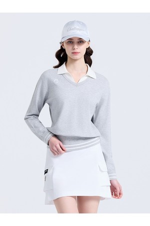 여성 레이어드 카라 V넥 니트 풀오버 멜란지그레이