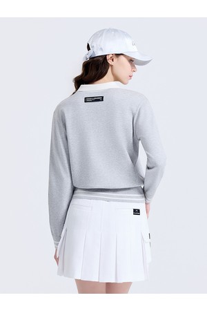 o 프레피 배색 포인트 소매와 밑단의 스트라이프 배색으로 경쾌한 무드 연출