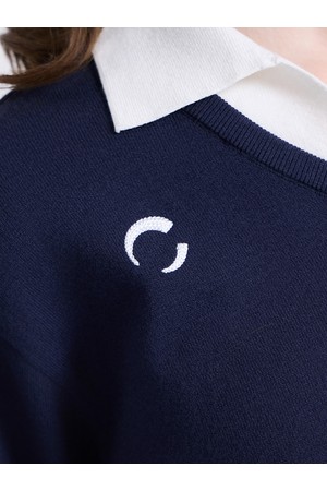 여성 레이어드 카라 V넥 니트 풀오버 네이비