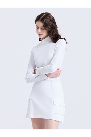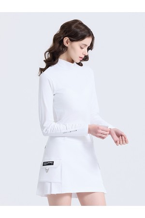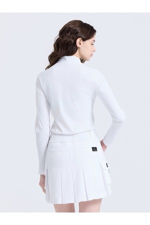 여성 셔링 포인트 소프트 모크넥 긴팔 티셔츠 화이트