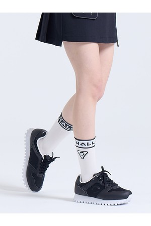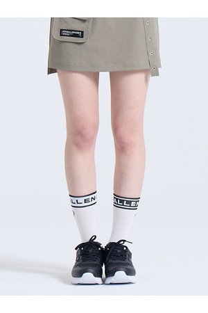 유니 로고 포인트 배색 쿠션 중목 양말 화이트