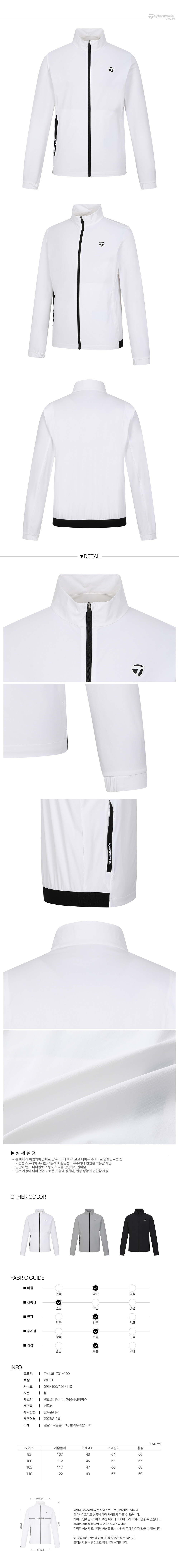 [테일러메이드] 26SS 남성 베이직 바람막이 점퍼 TMJU61701-100