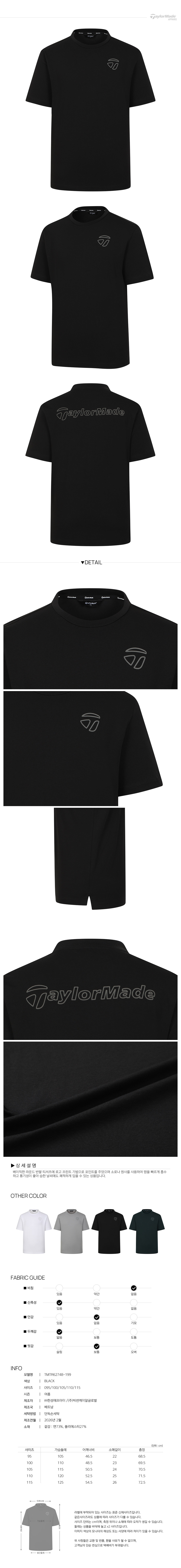 [테일러메이드] 26SS 남성 로고 프린트 라운드 반팔 티셔츠 TMTR62748-199