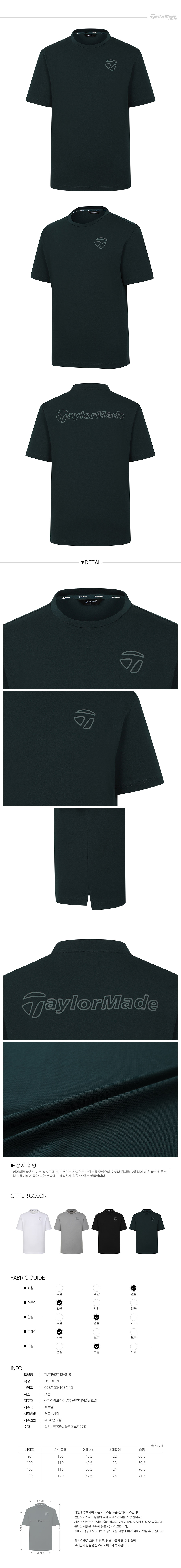[테일러메이드] 26SS 남성 로고 프린트 라운드 반팔 티셔츠 TMTR62748-819