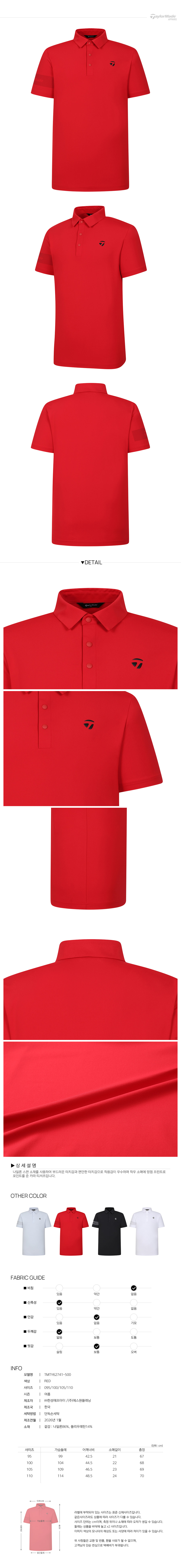 [테일러메이드] 26SS 남성 소매 포인트 카라 반팔 티셔츠 TMTY62741-500