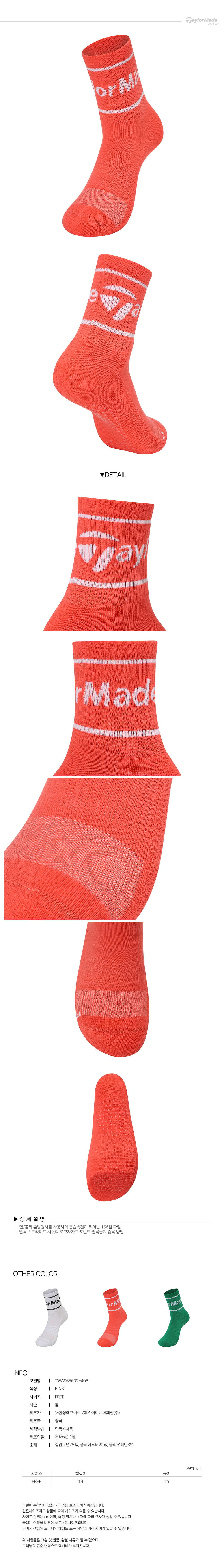 [테일러메이드] 26SS 여성 로고 중목 양말(15CM) TWAS65602-403