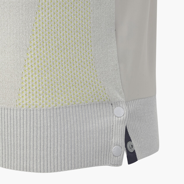 앞판은 고급스러운 니트, 뒷판은 활동적인 트리코트 소재를 믹스한 하이브리드 설계로 제작되어