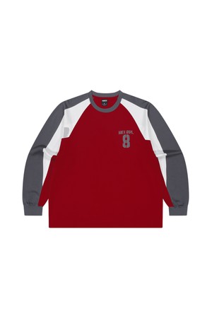 넘버8 래글런 블럭 롱 슬리브 (Deep Red)