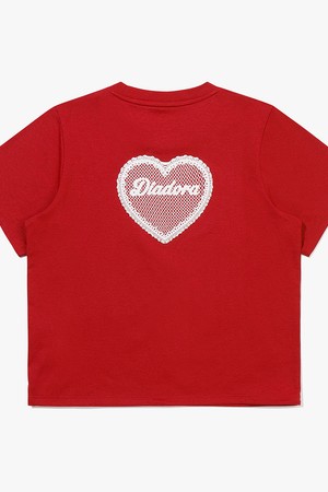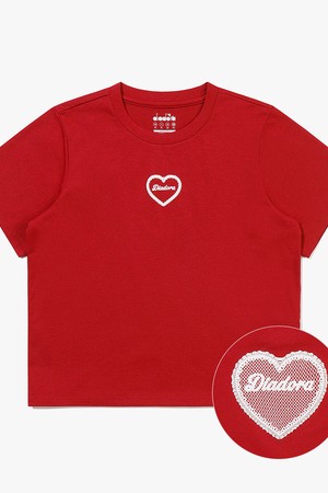하트 그래픽 반팔 티셔츠 우먼 RED