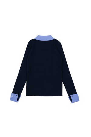 커프스 배색 카라니트 NAVY