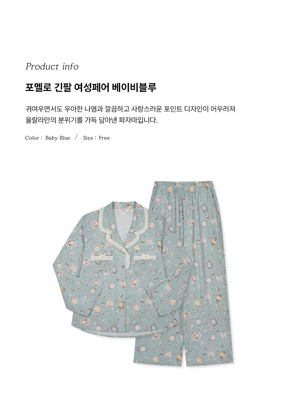 포멜로 긴팔 여성페어 베이비블루 (40수)