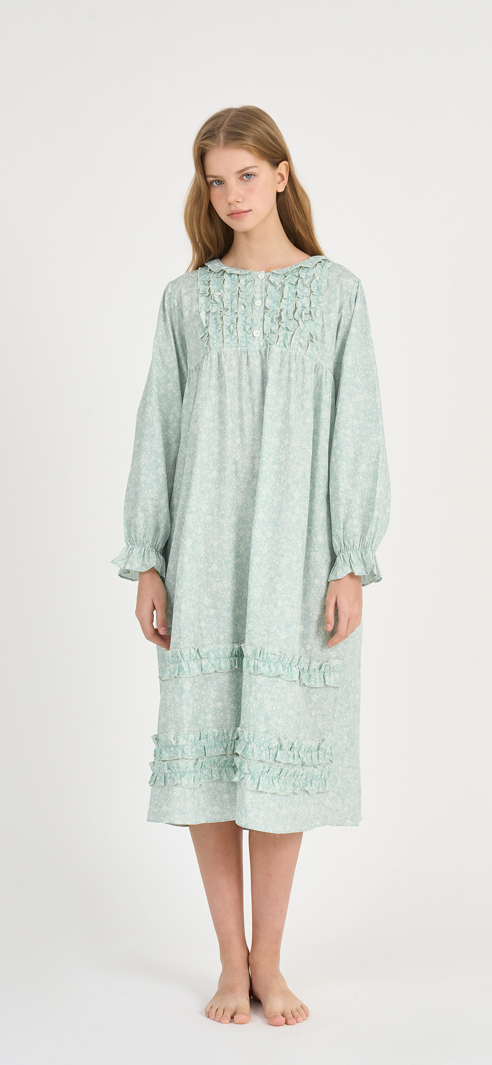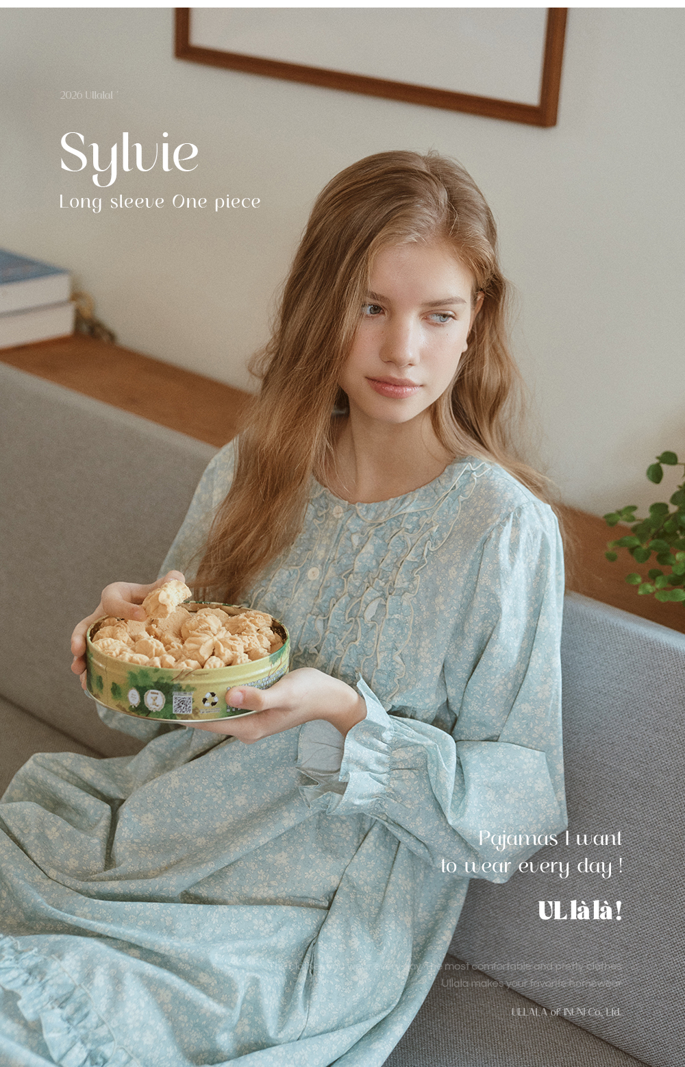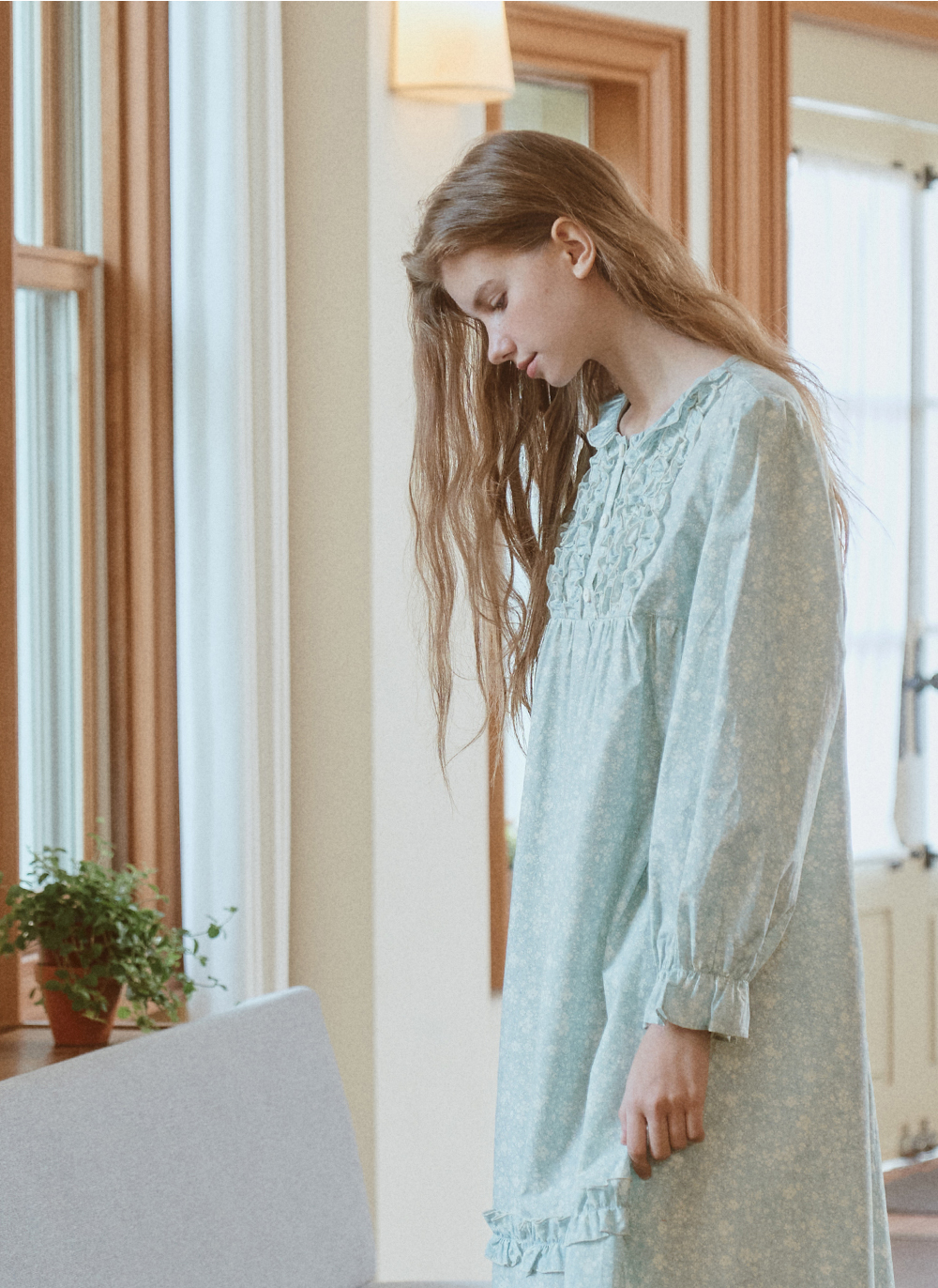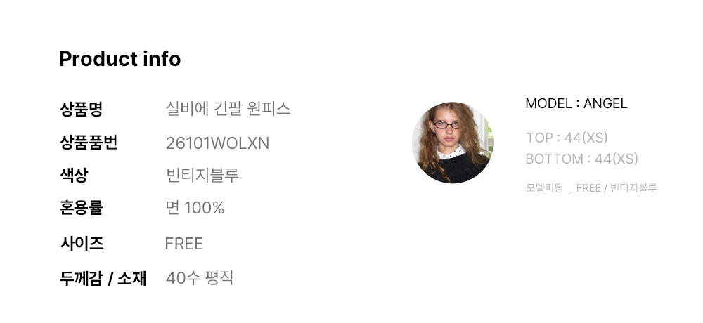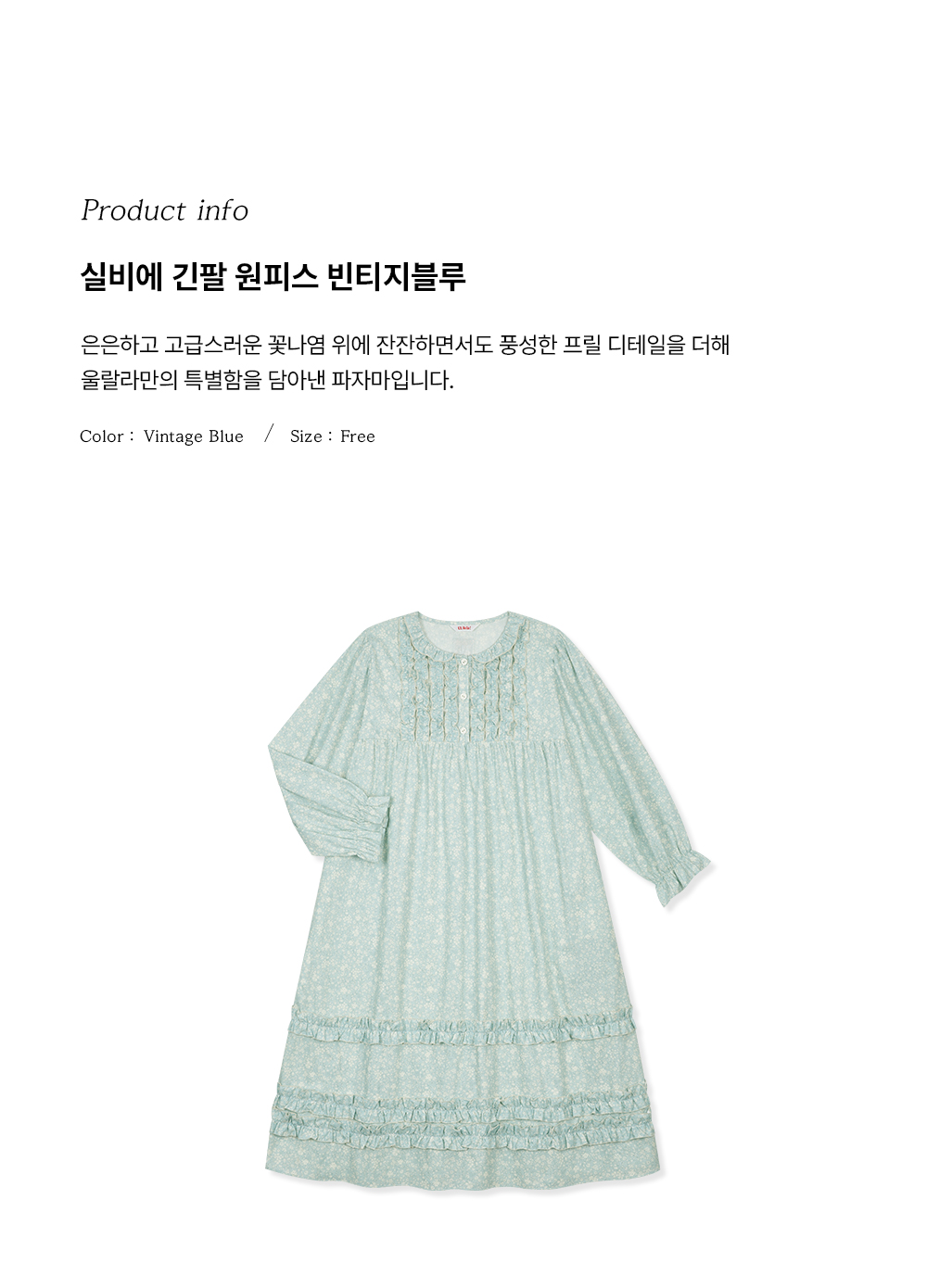 실비에 긴팔 원피스 빈티지블루 (40수)