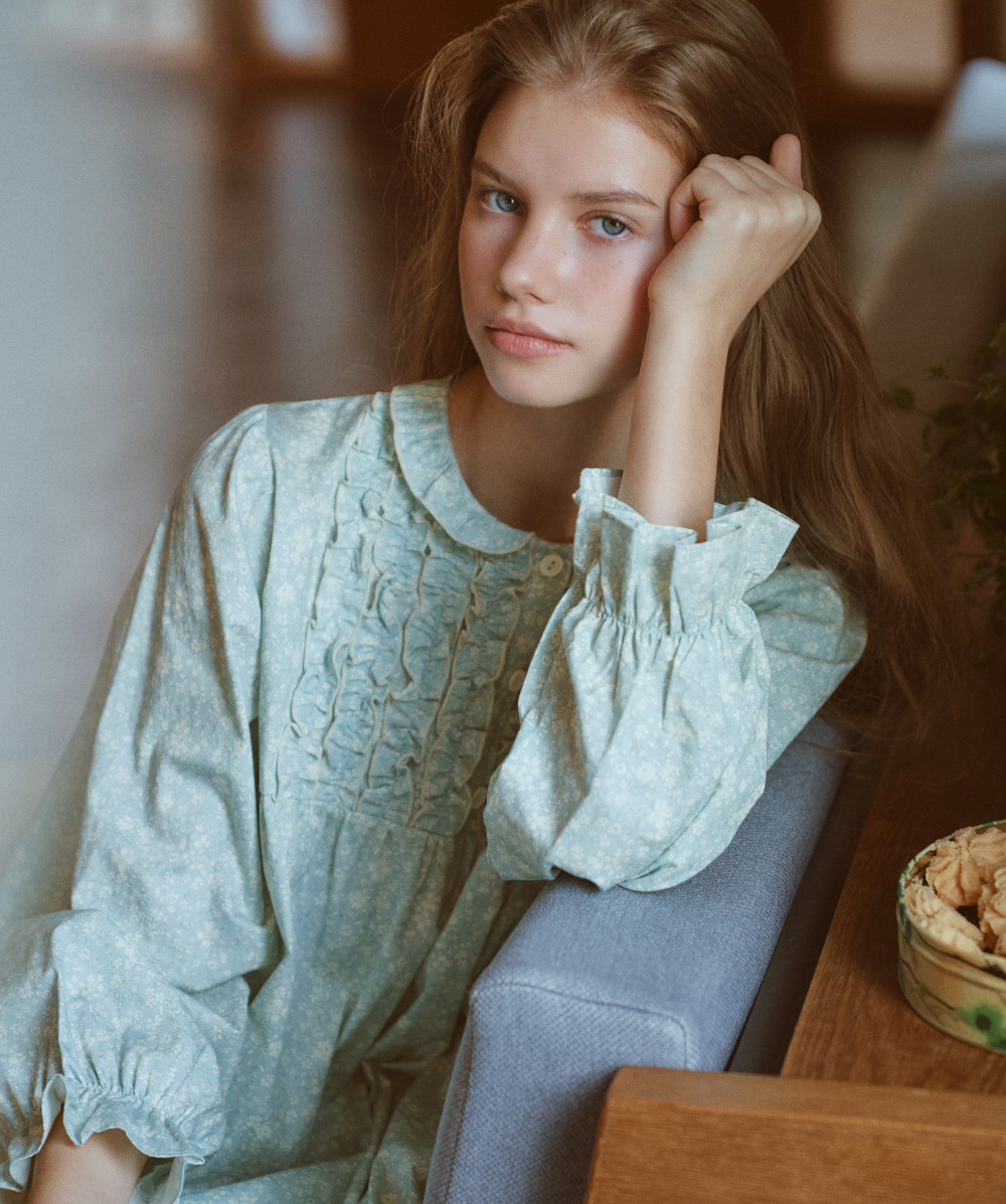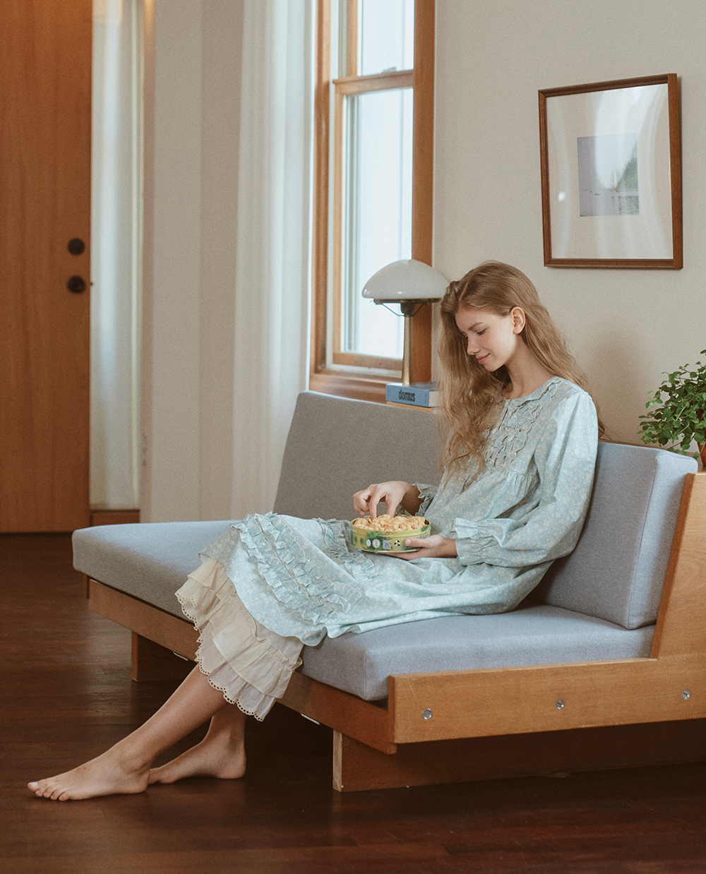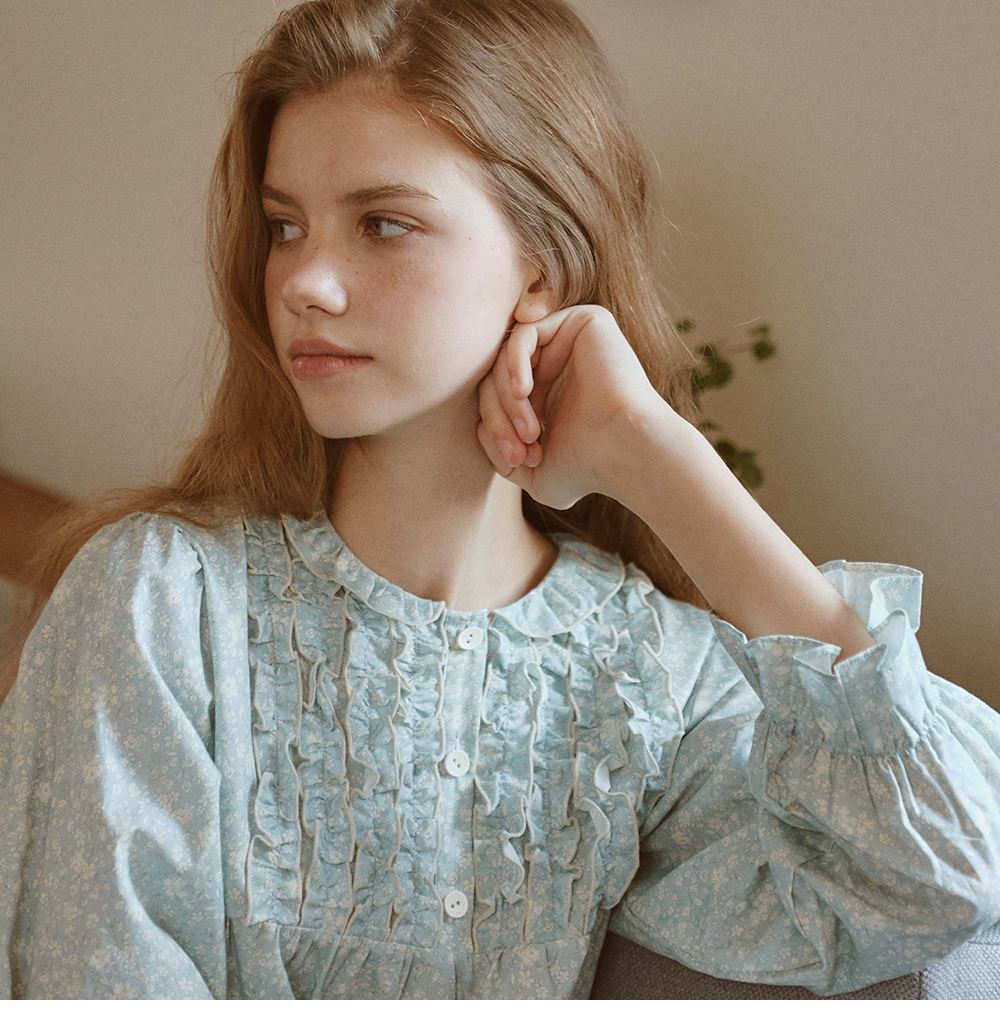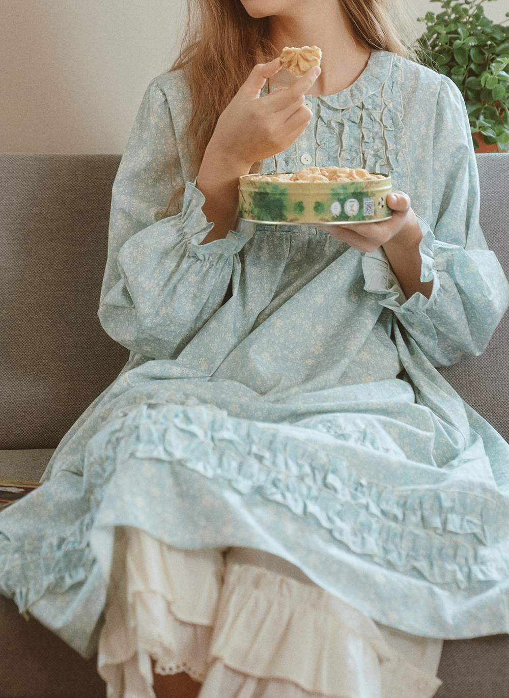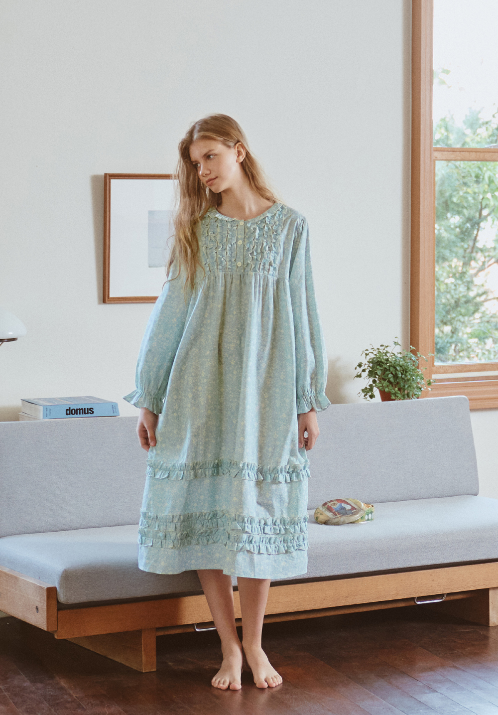 실비에 긴팔 원피스 빈티지블루 (40수)