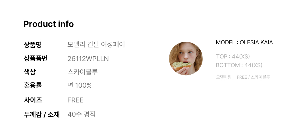 모엘리 긴팔 여성페어 스카이블루 (40수)