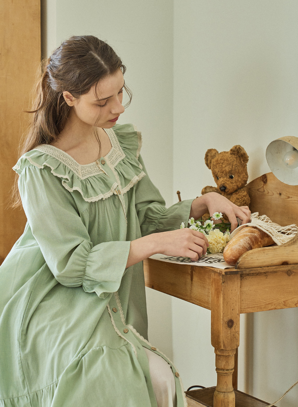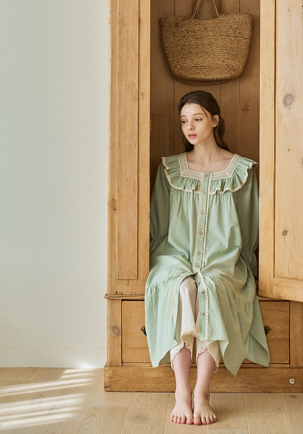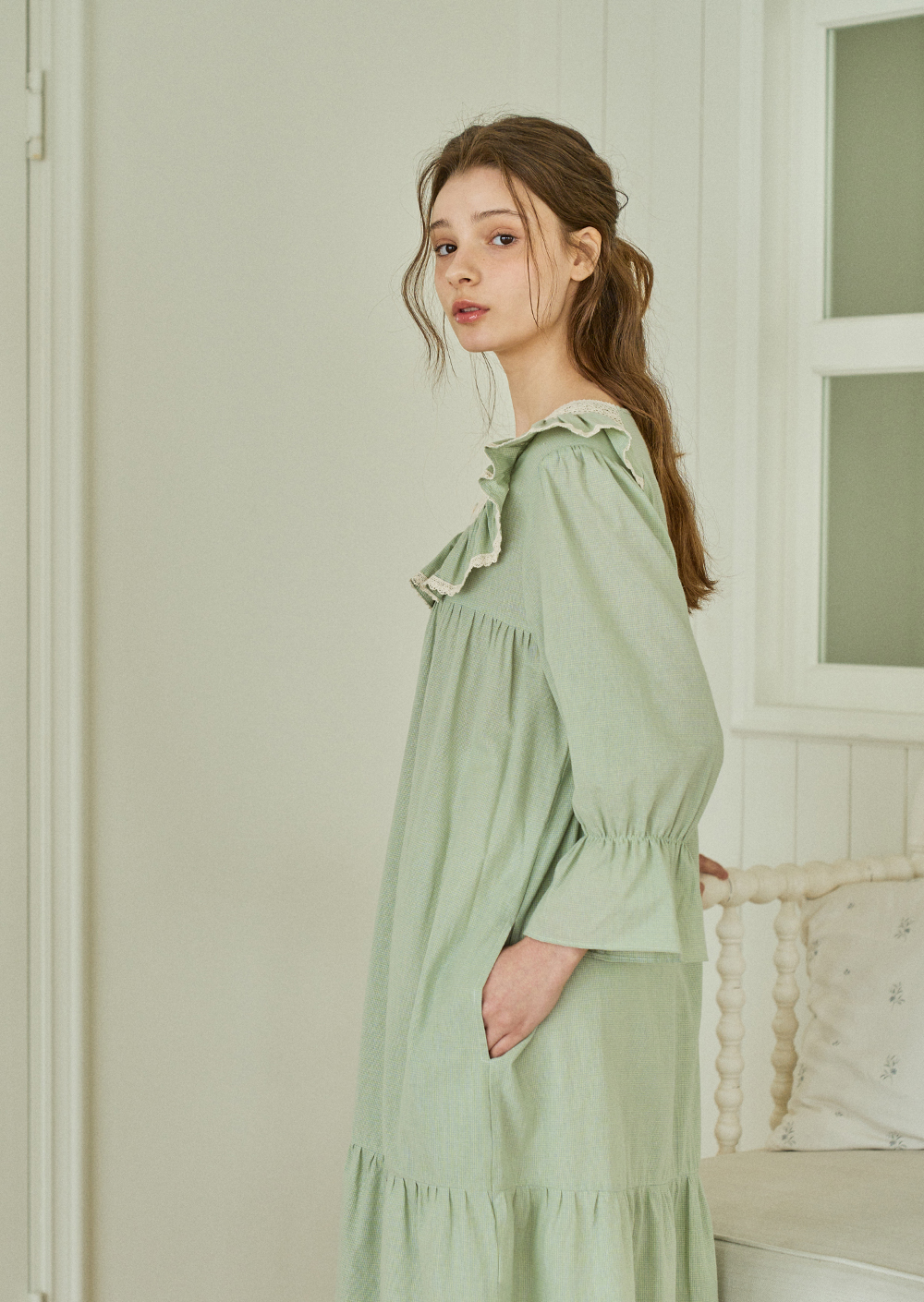 보비 7부 원피스 그린 (40수)
