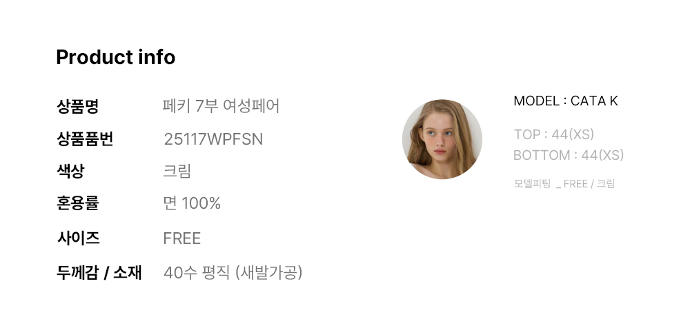 페키 7부 여성페어 크림 (40수)