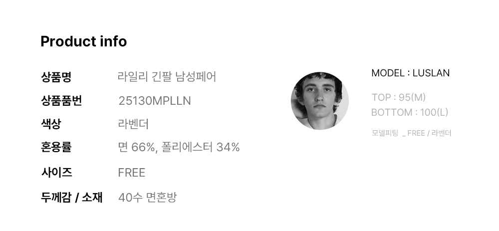 라일리 긴팔 남성페어 라벤더 (40수)