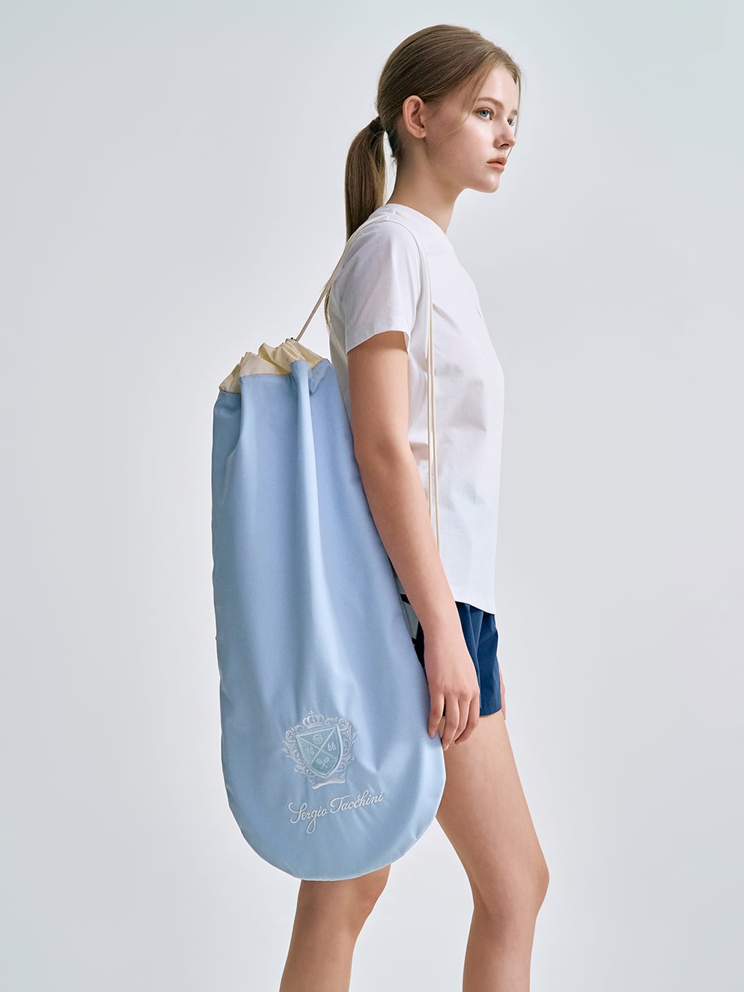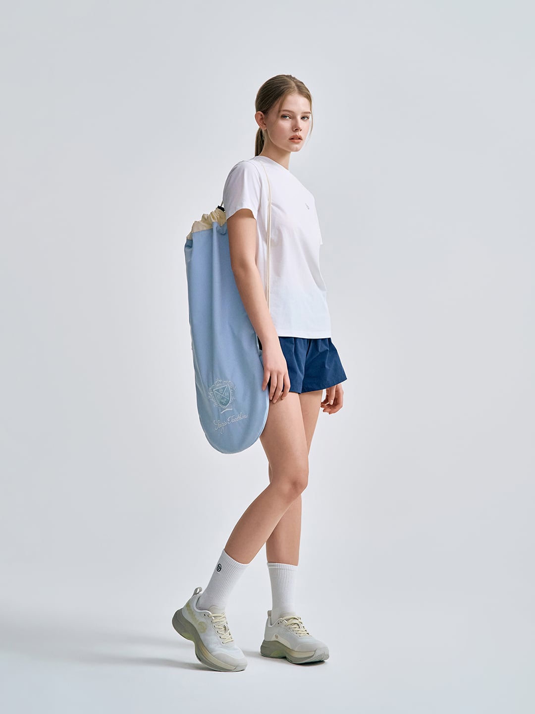 - -- 스트링 끈을 적용해 입구 조절이 가능하며 어깨에 메어 안정적이고 편안한 착용이 가능한 캐리 방식