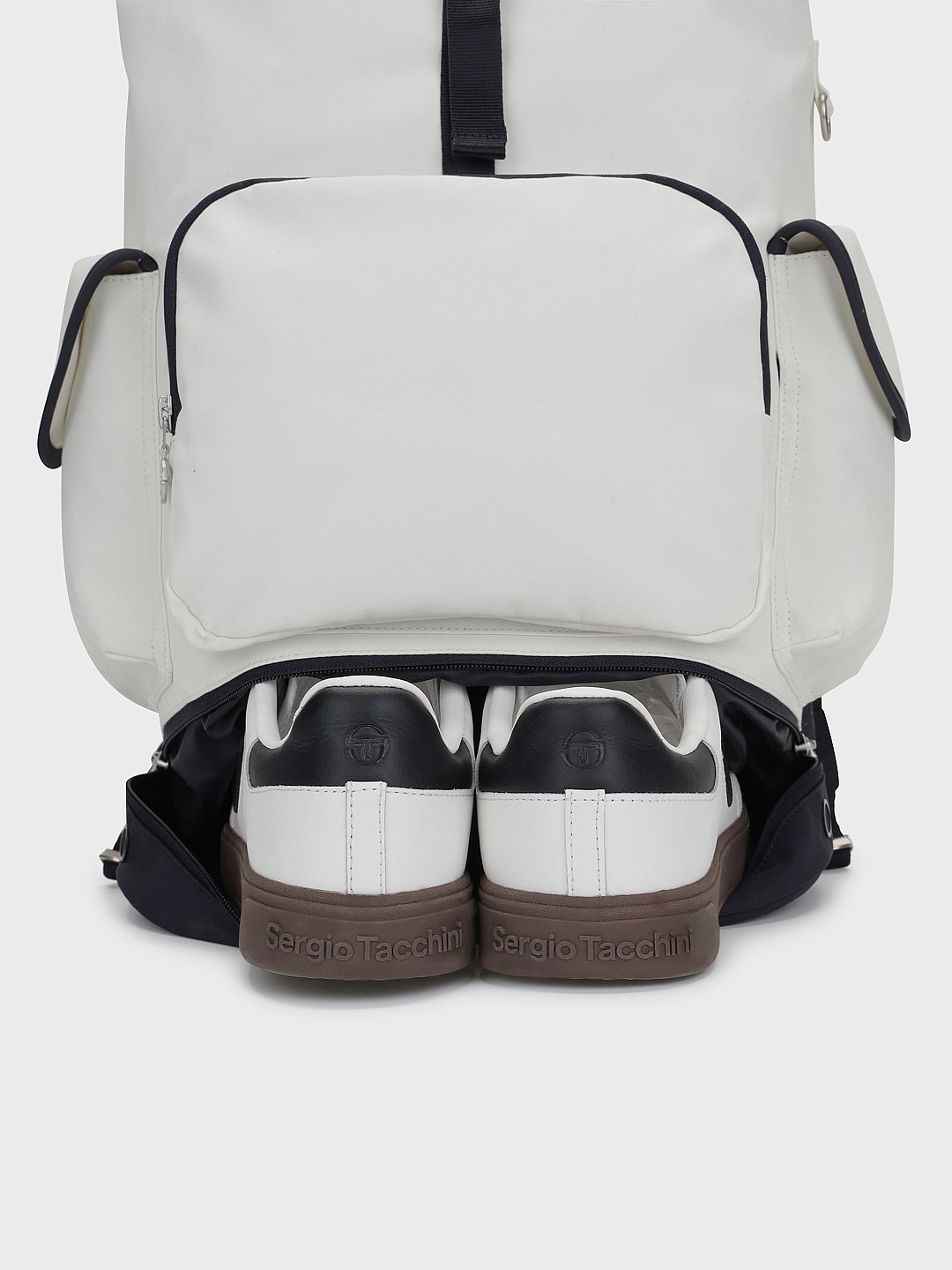 - -하단에 별도의 신발 포켓을 구성해 운동화나 오염된 물품을 메인 수납공간과 분리해 위생적으로 보관할 수 있는 공간 설계