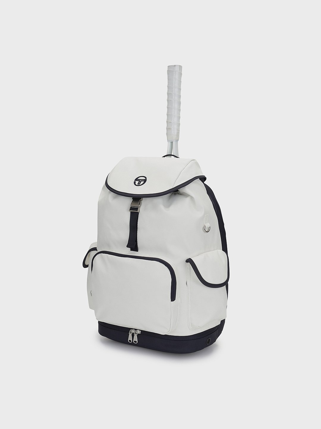 - -전형적인 스포츠 가방의 형태에서 벗어나 아웃포켓 디자인을 적용해 테니스 코트뿐 아니라 일상 환경에서도 자연스럽게 착용 가능한 외관 구성