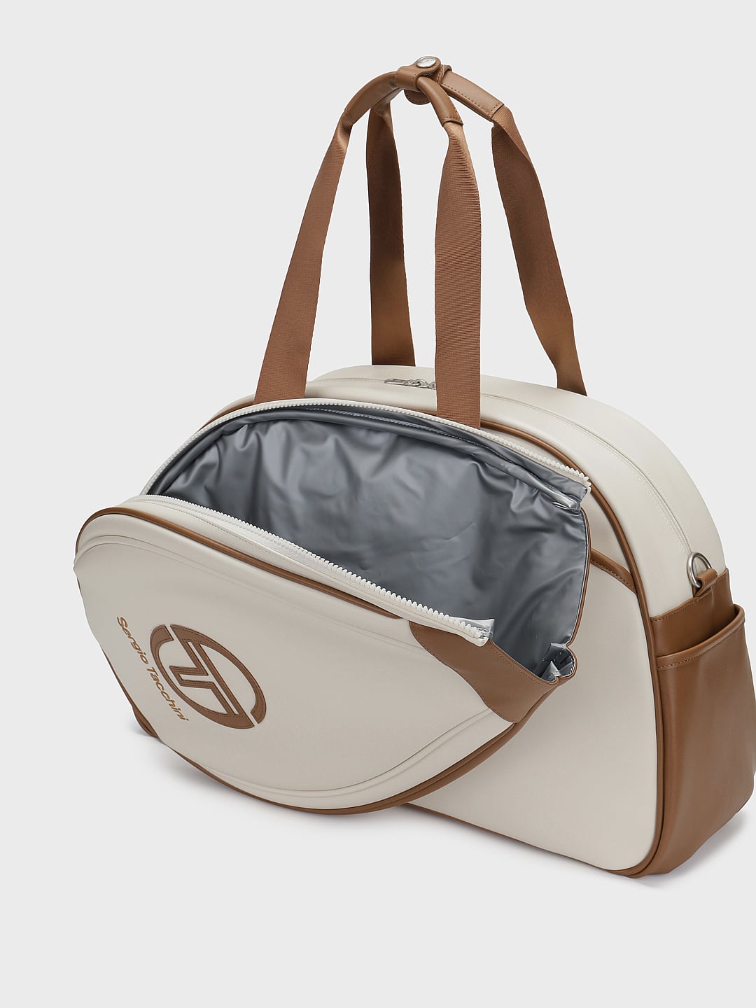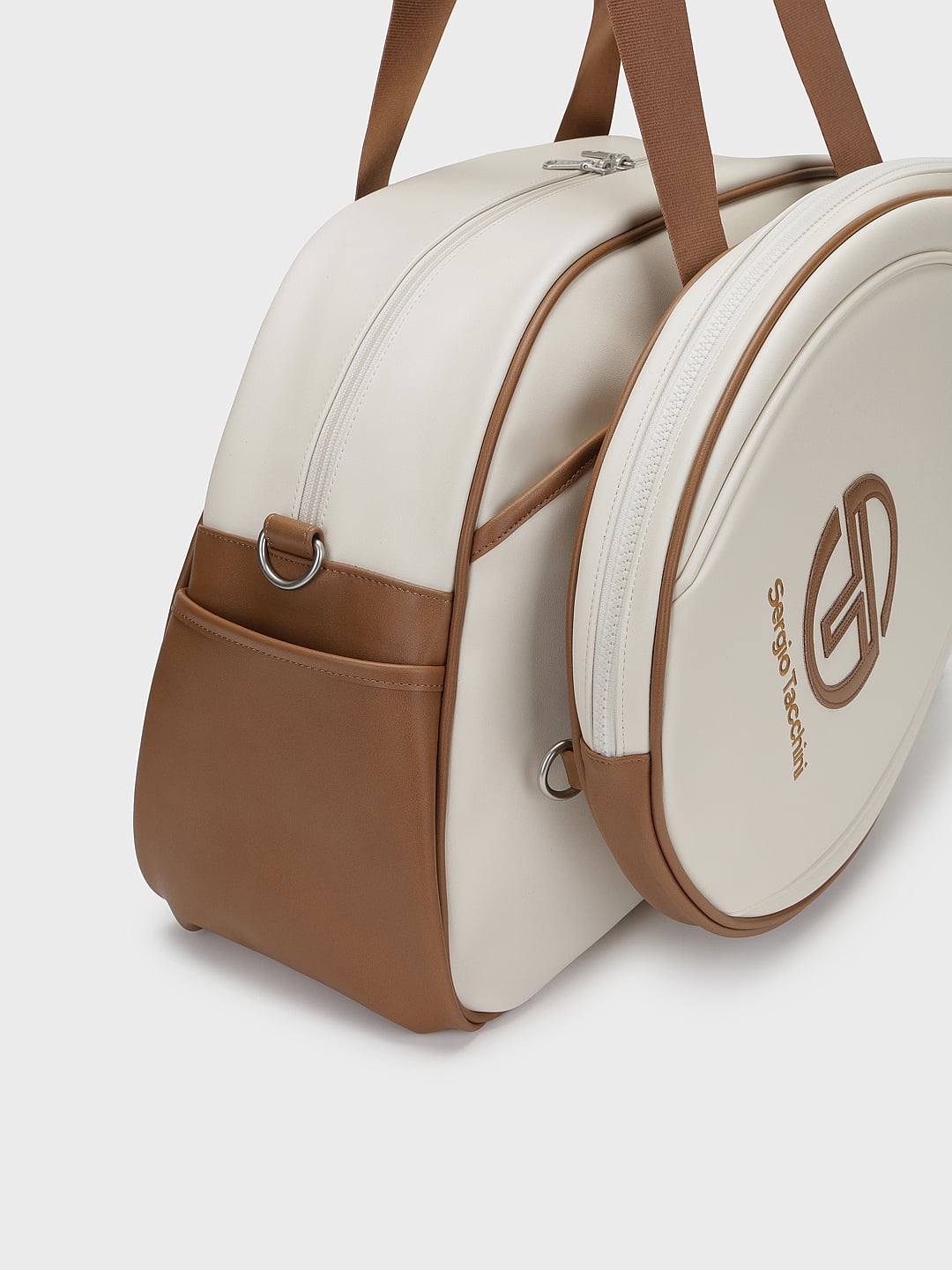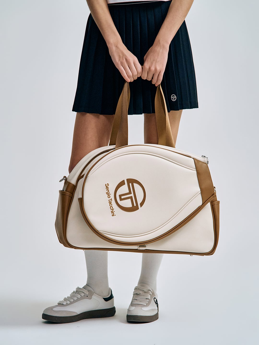 - - 보스턴백의 핸들을 라켓백 가죽 스트랩에 통과시켜 손쉽게 고정할 수 있도록 설계된 결합 방식