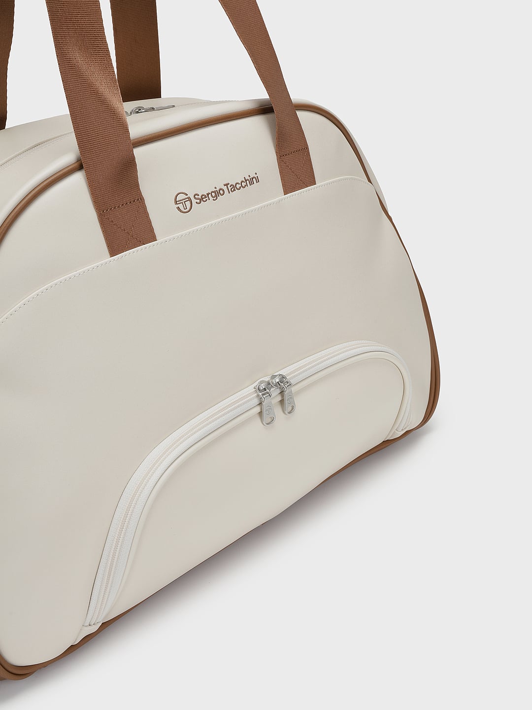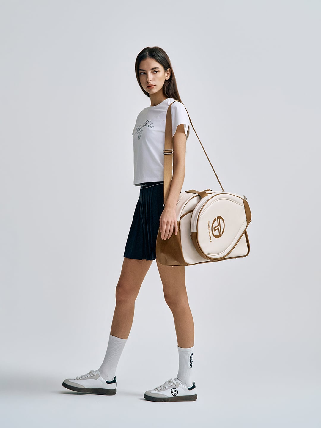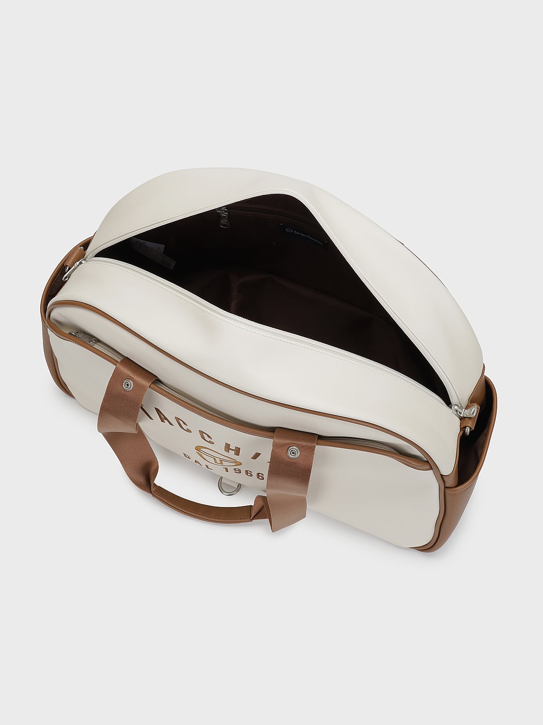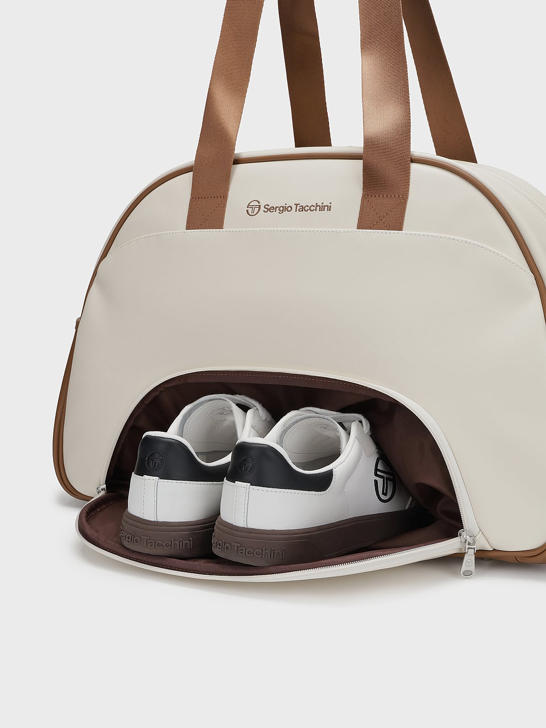- - 보스턴백의 핸들을 라켓백 가죽 스트랩에 통과시켜 손쉽게 고정할 수 있도록 설계된 결합 방식
